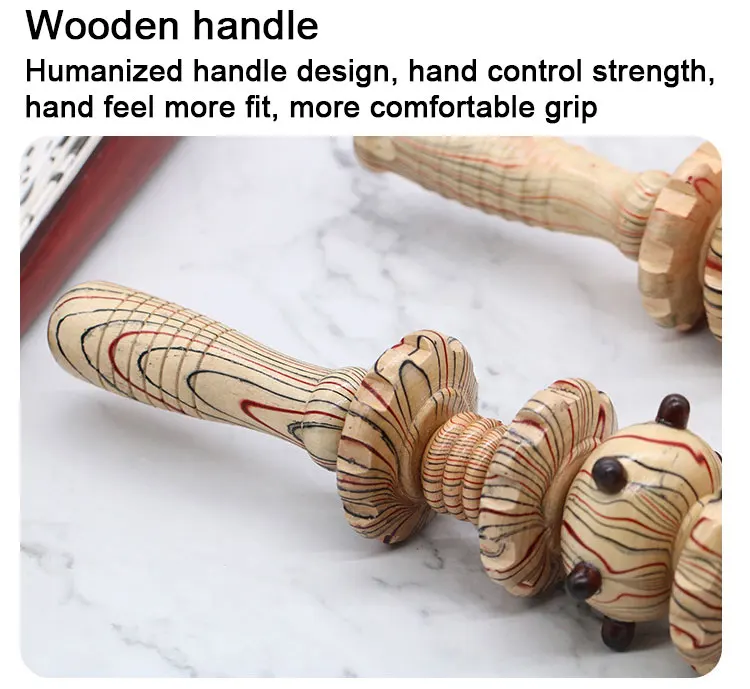 4. Материал: высококачественная древесина, построенная на протяжении всего срока службы, с ручками для эргономичного захвата и 9 деревянными независимыми роликами на стальном стержне, изготовленными с высоким качеством, усиленный стальной сердечник и супер прочный корпус, который не будет легко сгибаться под жестким давлением.