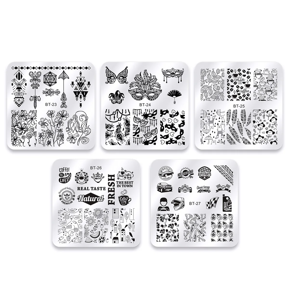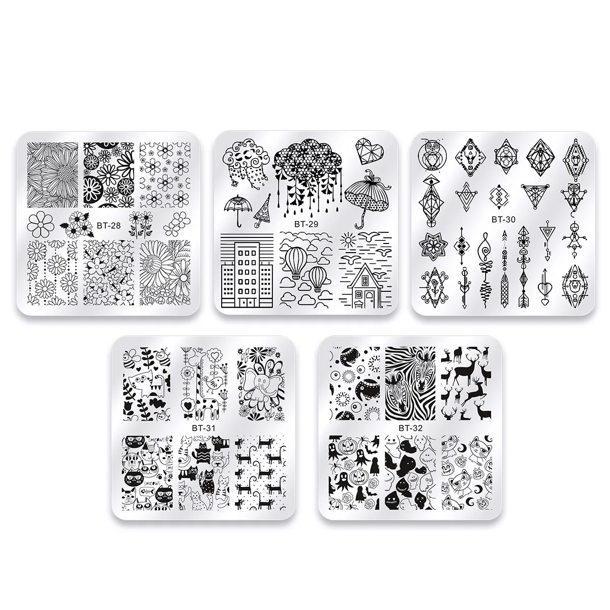 6*6 см квадратные шаблоны для дизайна ногтей штамповочные пластины дизайн Цветочный пейзаж различные шаблоны для печати шаблоны для изображения