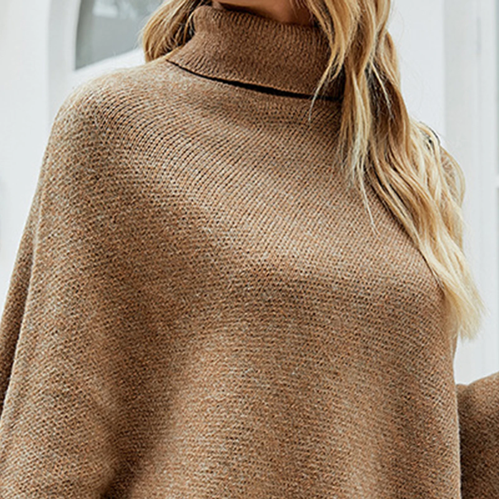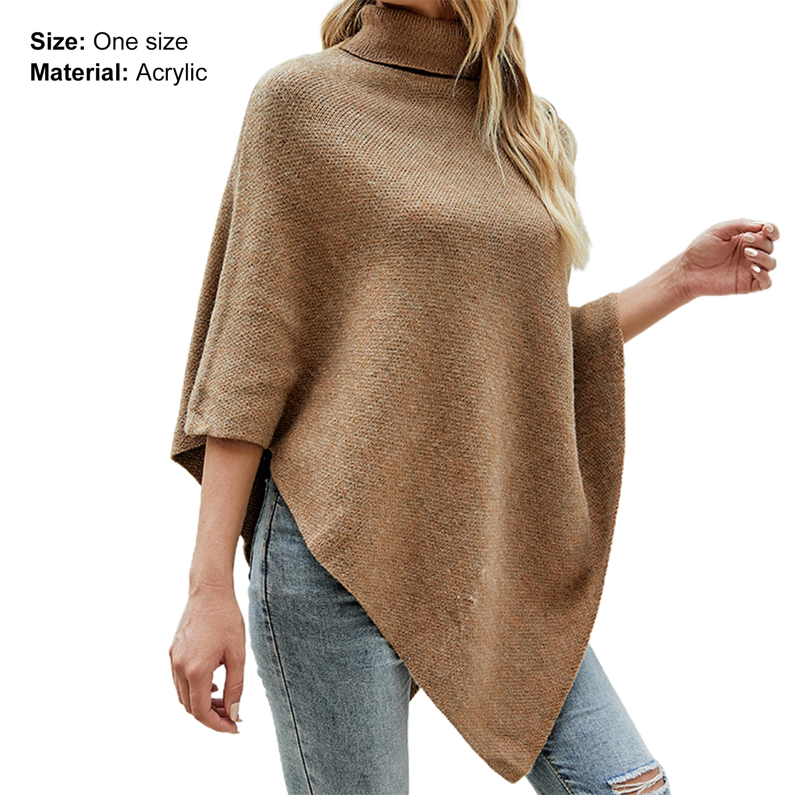 Женское пальто зима/осень 2021 вязаное с рукавом летучая мышь Осень Зима Водолазка с боковыми пуговицами Асимметричный Подол Пончо пальто свитер