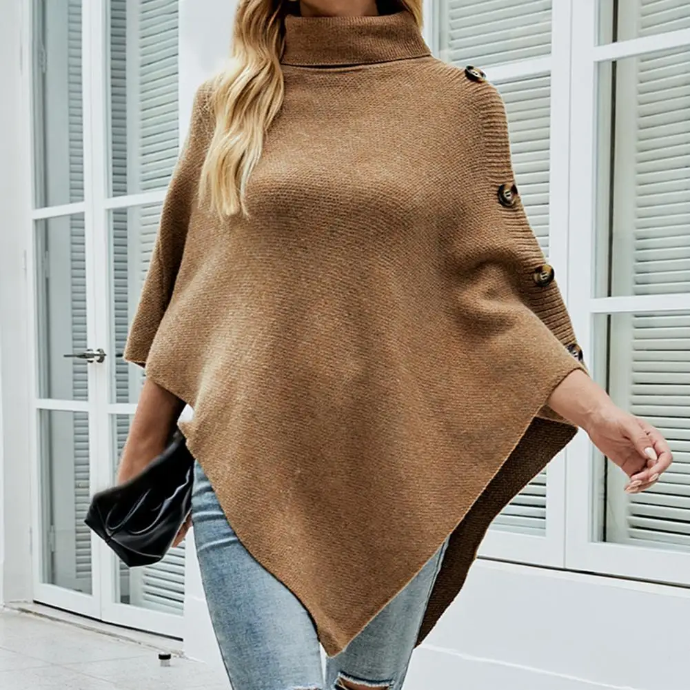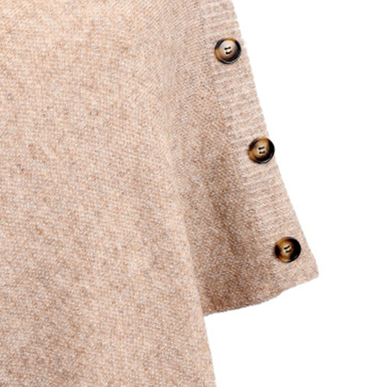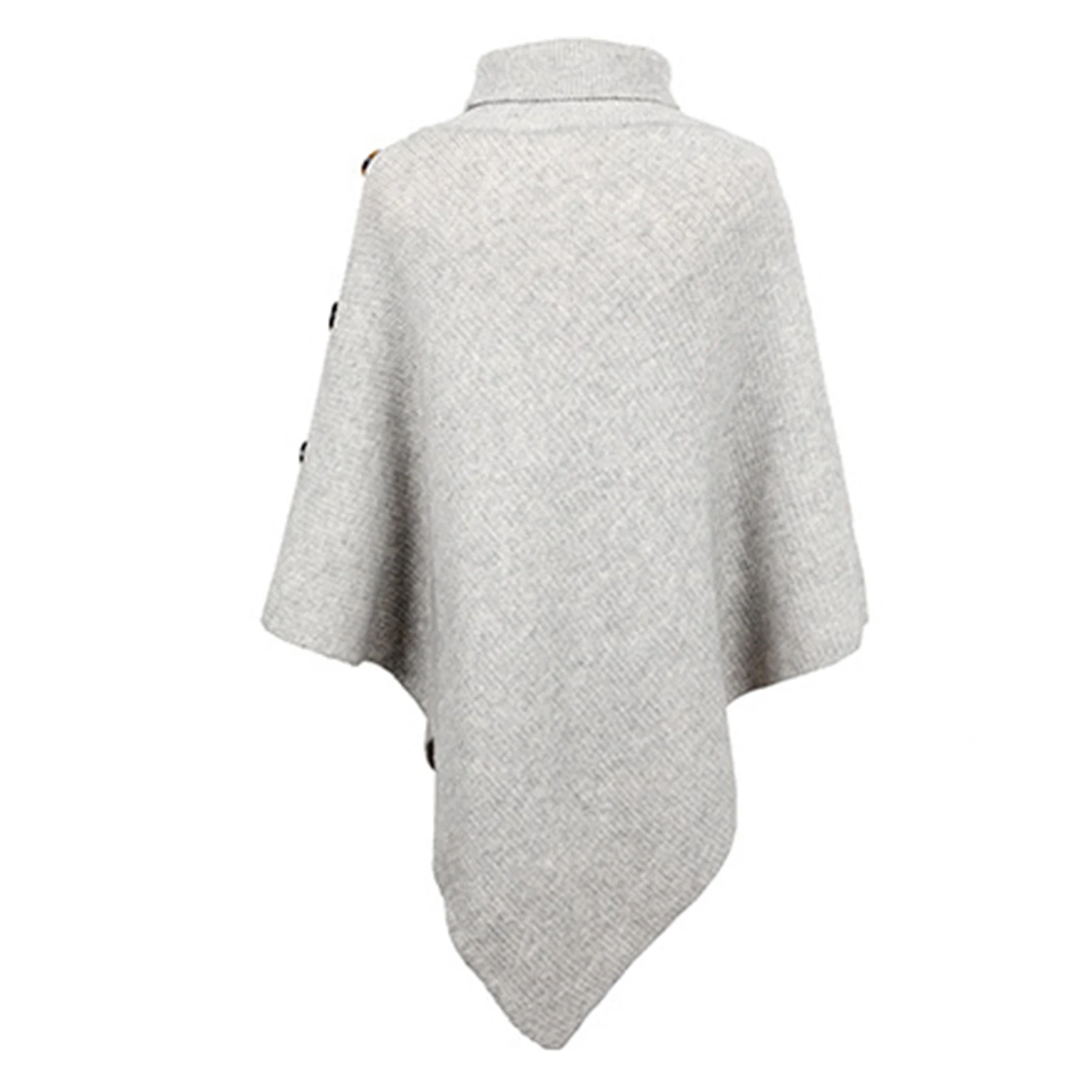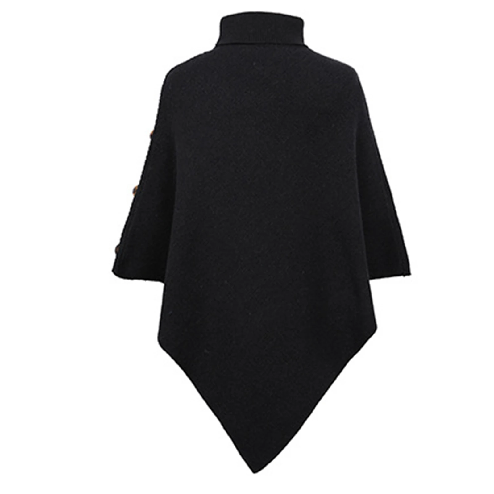 Type13Turtleneck Side Buttons Irregular Hem Poncho Coat Sweater