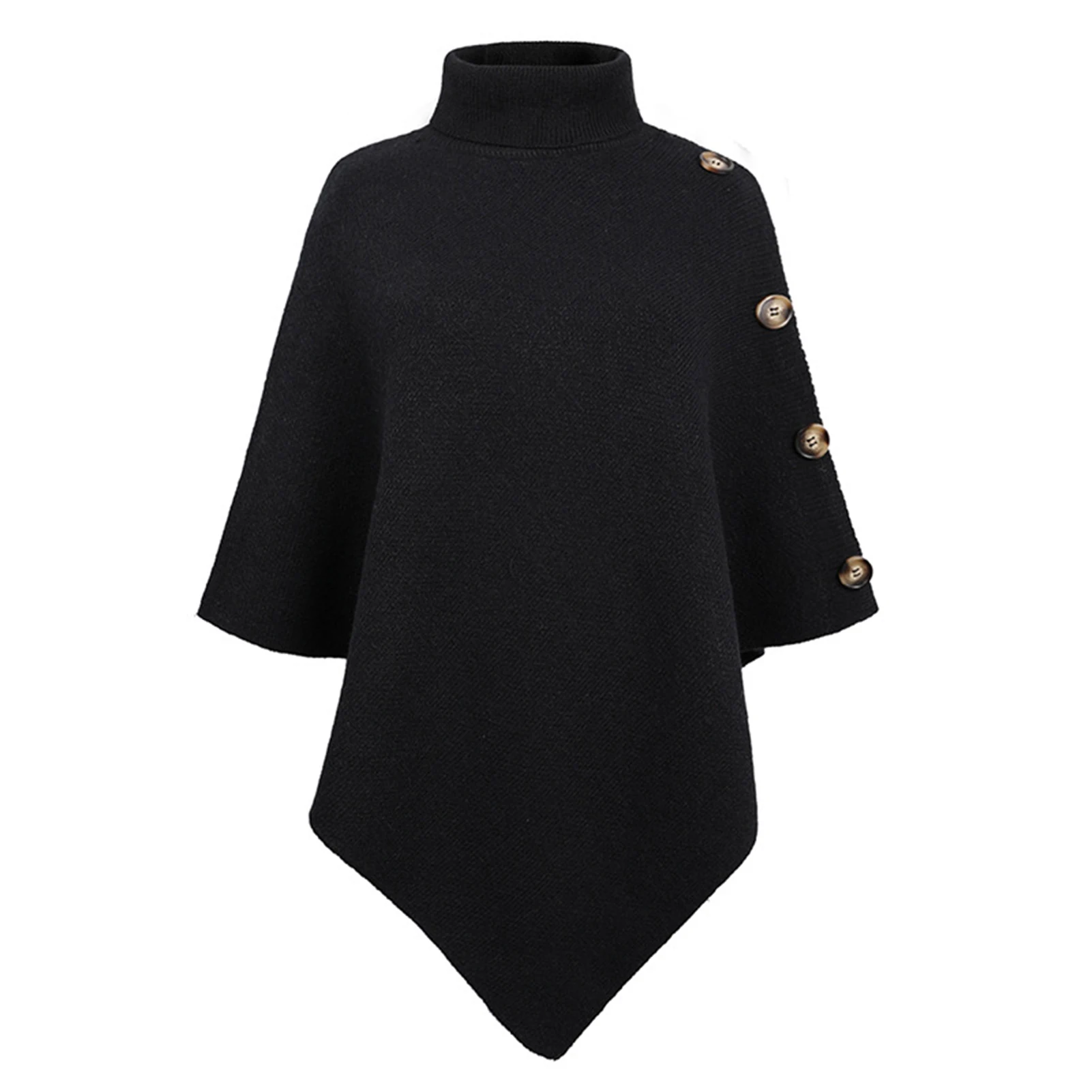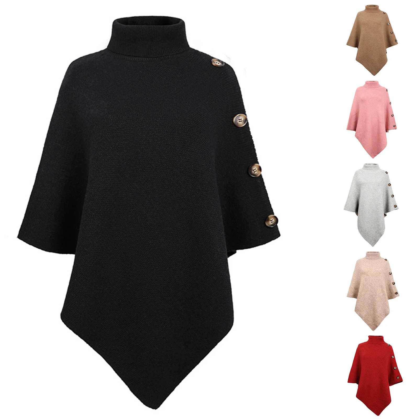2021 осенне-зимнее пончо на пуговицах, Женский Свитер оверсайз, водолазка, джемпер, вязаная одежда, винтажная накидка с рукавом «летучая мышь», пончо