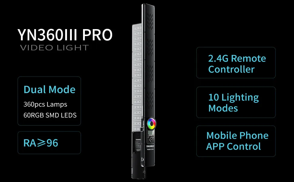 В YN360III ламповая панель длиной до 40 см, значительно расширения светильник угол, который очень подходит для стерео и широкоугольный светильник дополнение. Принимает 360 хорошо подобранных высококачественных лампочек с большим светящимся чипом, индекс цветопередачи больше или равен 95, YN360III может идеально восстановить истинный цвет объекта.