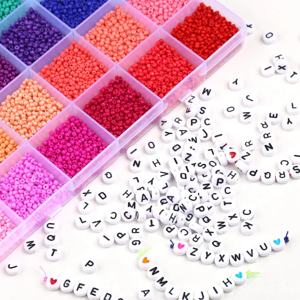 Стеклянные бусины 3 мм, набор с инструментами, бусины с буквами для изготовления ювелирных изделий, браслетов, колец, аксессуары сделай сам, комплект украшений