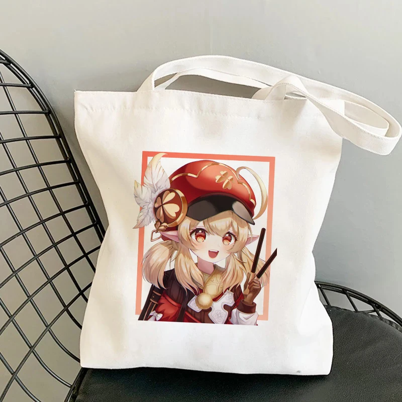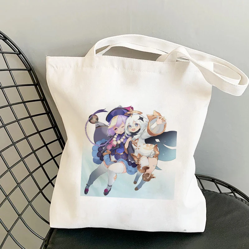 Сумка-шоппер для игр Genshin Impact Qiqi Harajuku, Холщовая Сумка для покупок большой вместимости, складная кавайная Аниме Сумка через плечо, сумка