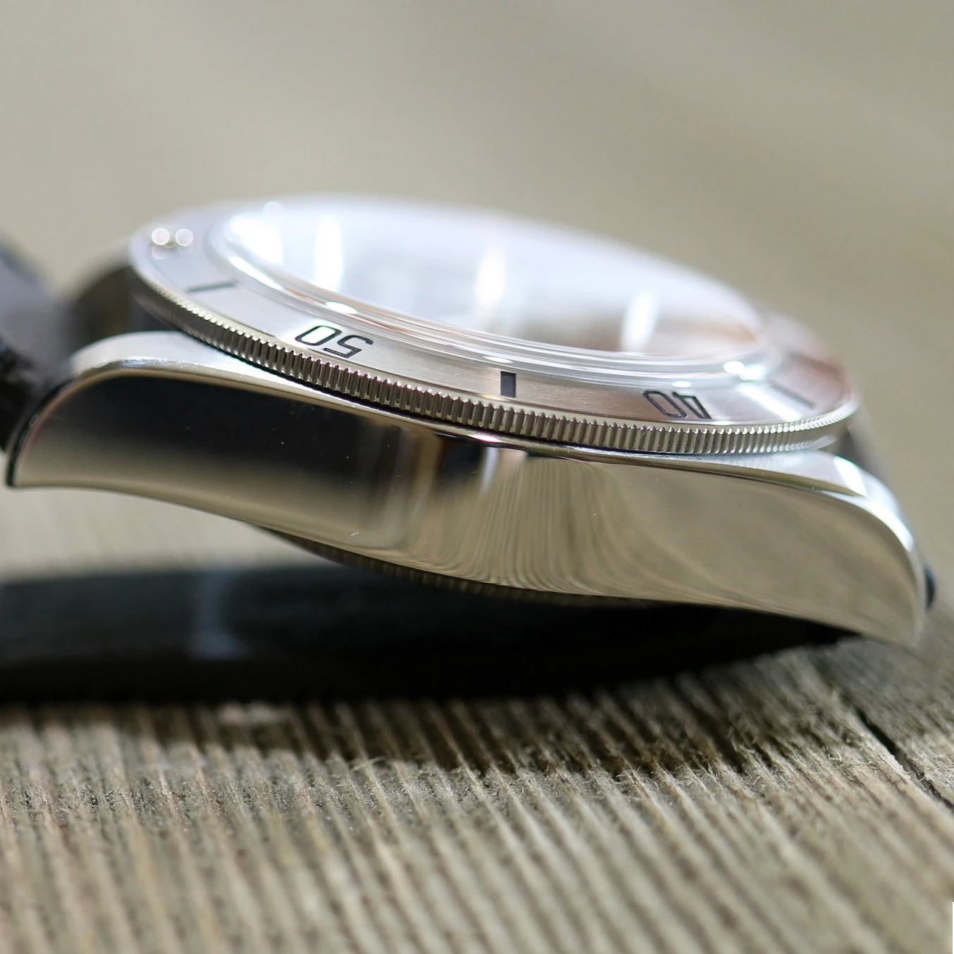 Самой отличительной особенностью новой модели является Безель из нержавеющей стали, который привлекает внимание круговой матовой поверхностью. Треугольник в 12 часов украшен красным цветом, что обеспечивает спортивный вид.