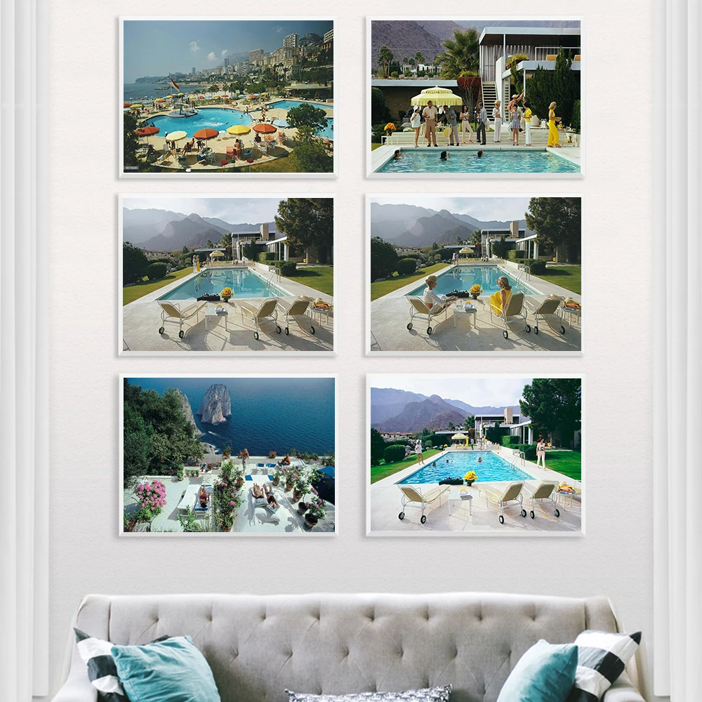 Гламурное искусство у бассейна, дом пустыни, принты, Картина на хол...