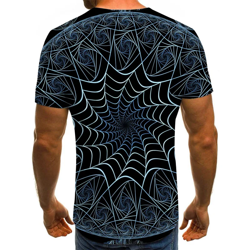 Летняя мужская футболка с трехмерным вихревым рисунком, повседневная трендовая мужская одежда с круглым вырезом и 3D принтом, модные топы с коротким рукавом, футболка