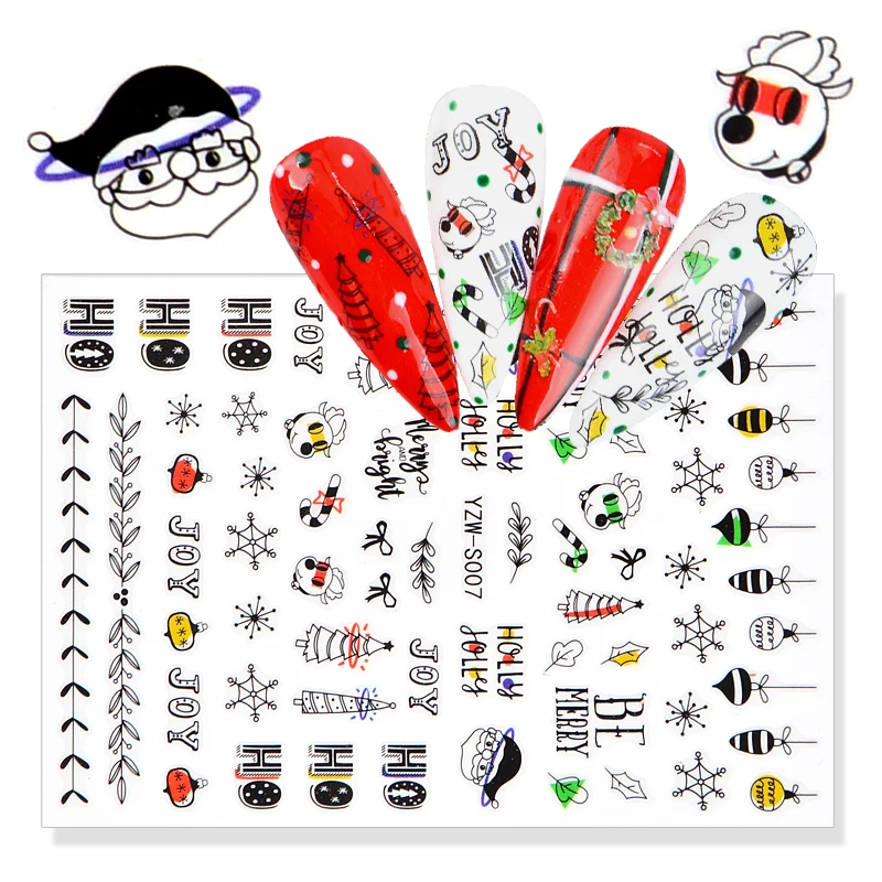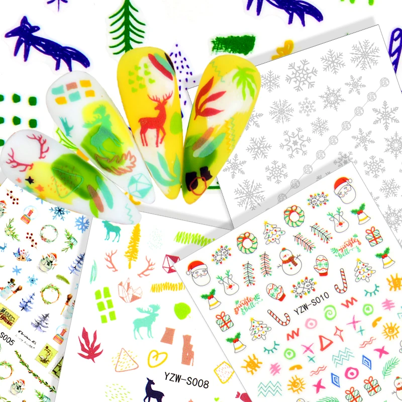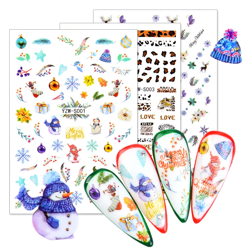2022 Рождество 3D наклейки для ногтей Зимняя Снежинка Олень Рождественское дерево мультяшный клей слайдеры аксессуары для дизайна ногтей наклейки