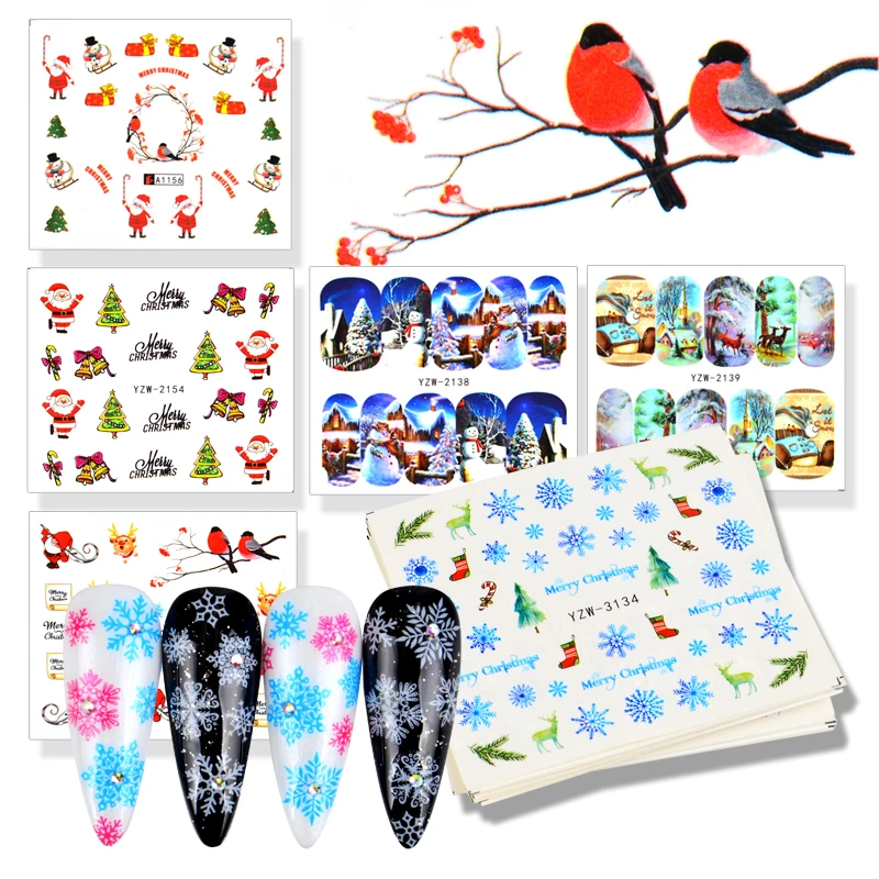 1 шт. Рождественские Зимние наклейки для ногтей Robin Snow Flower новогодние наклейки для ногтей на Хэллоуин дизайн ногтей Аксессуары для декора