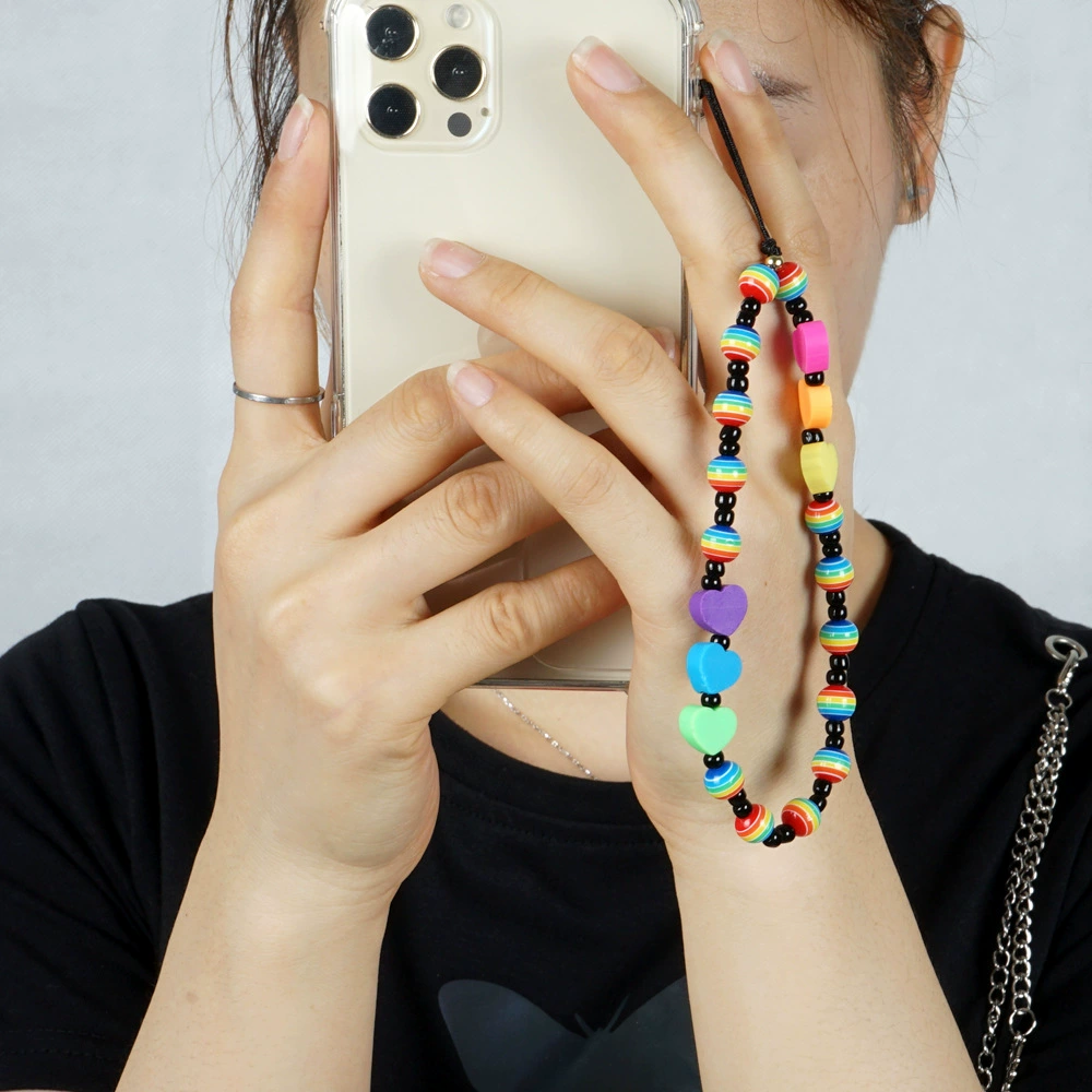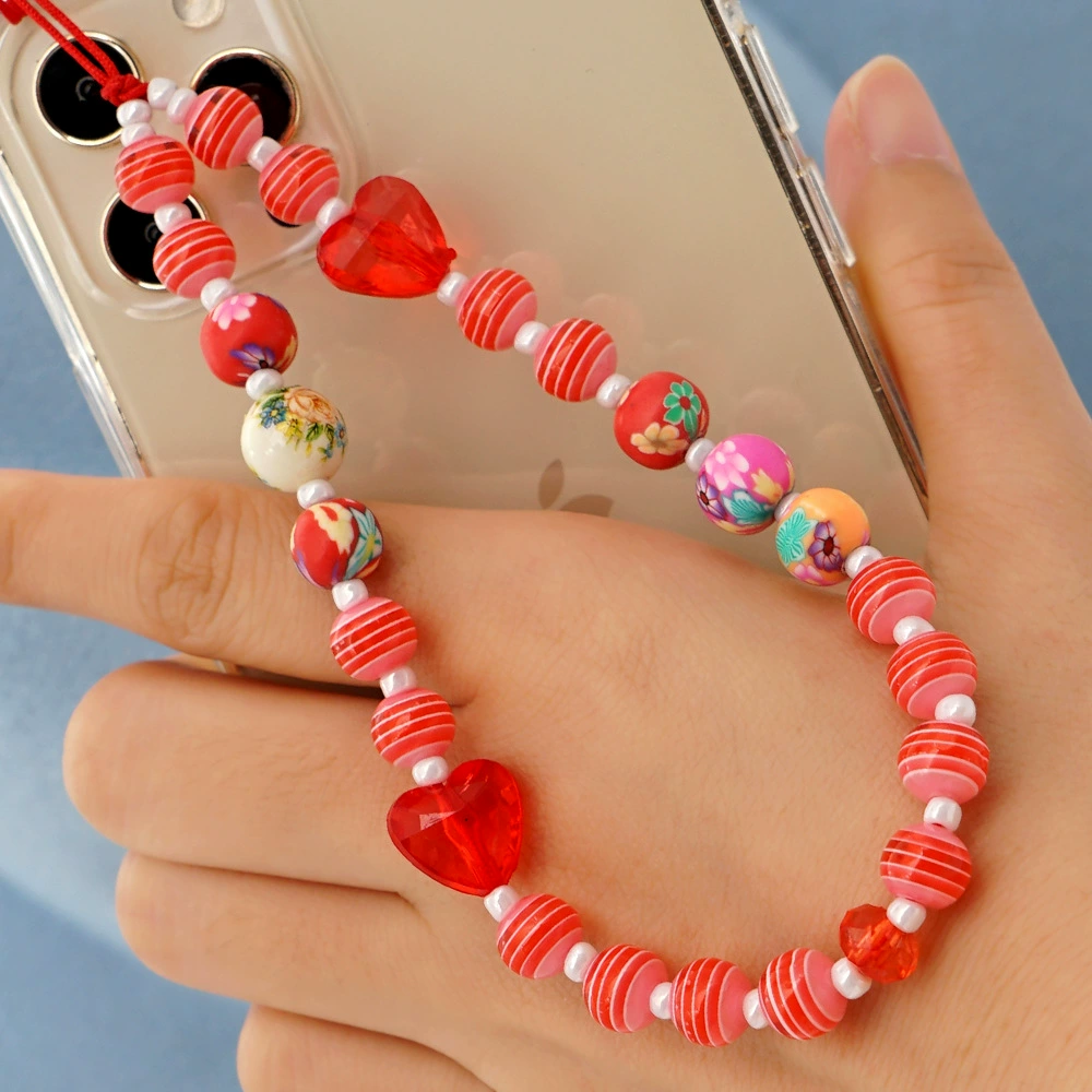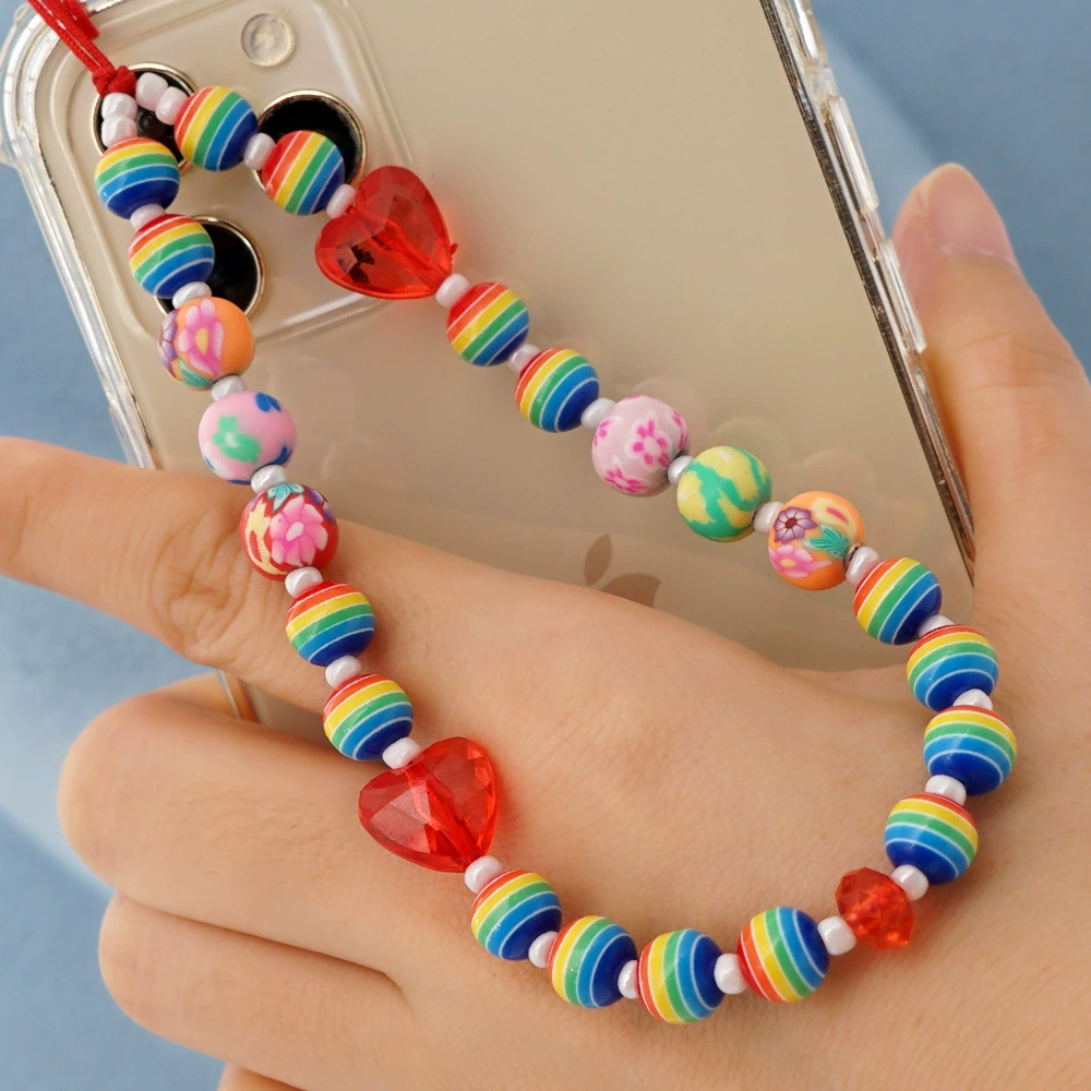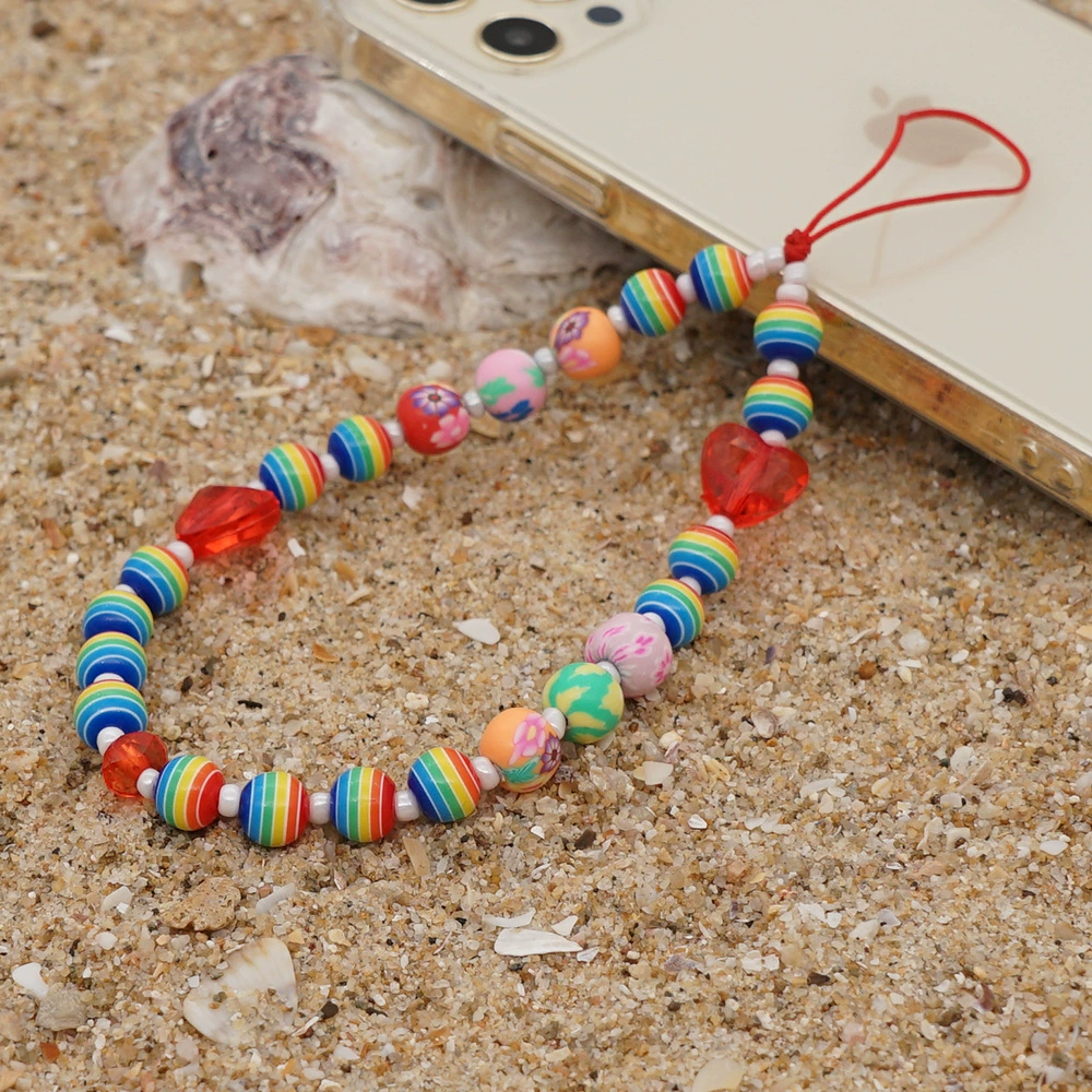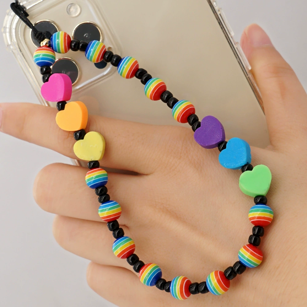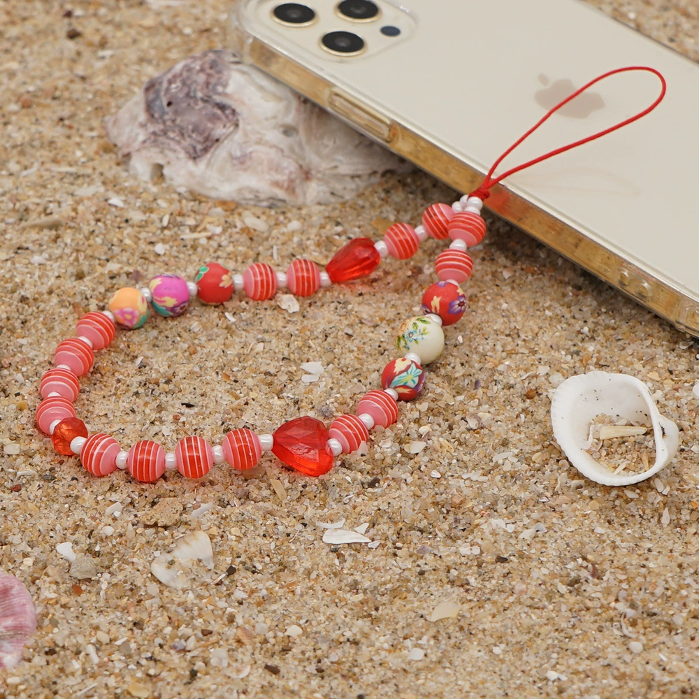Японский и корейский стиль искусственная цепь цветной акриловый персиковый Сердце Полосатые бусины женский телефонный ремешок с защитой от потери ювелирные изделия