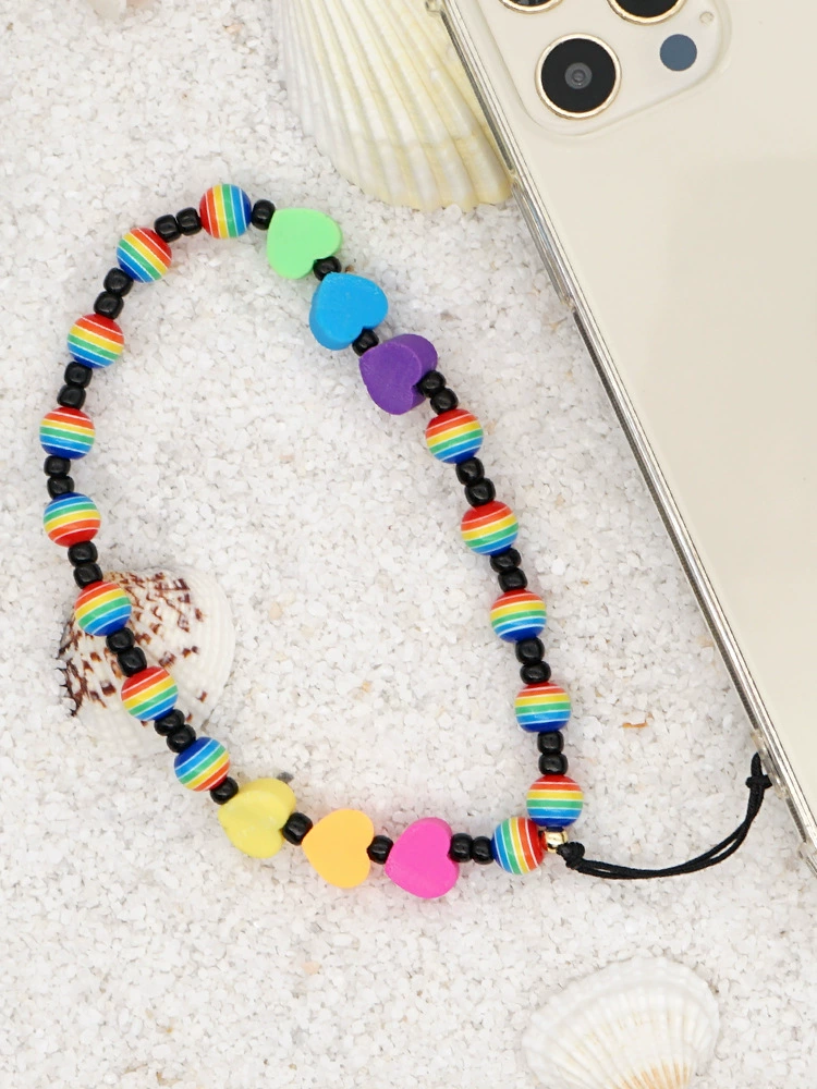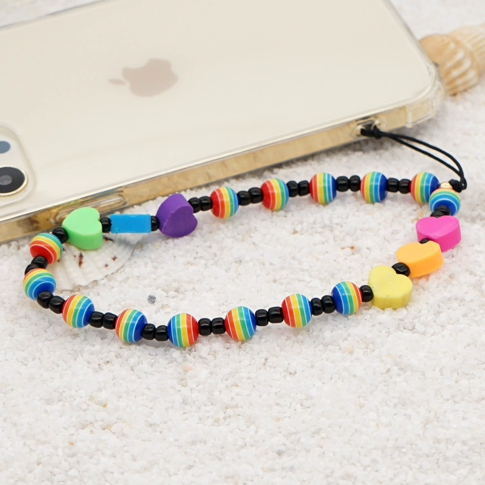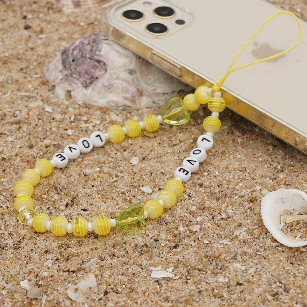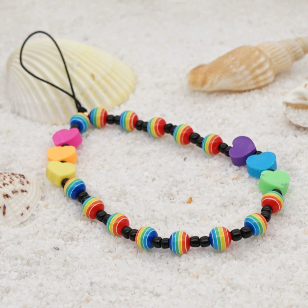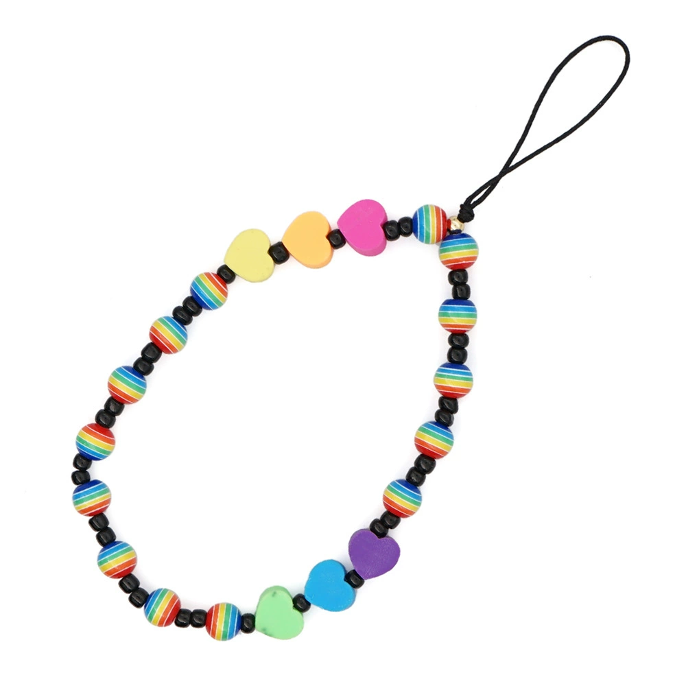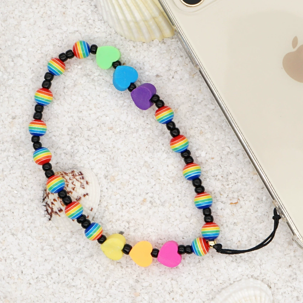 Японский и корейский стиль искусственная цепь цветной акриловый персиковый Сердце Полосатые бусины женский телефонный ремешок с защитой от потери ювелирные изделия