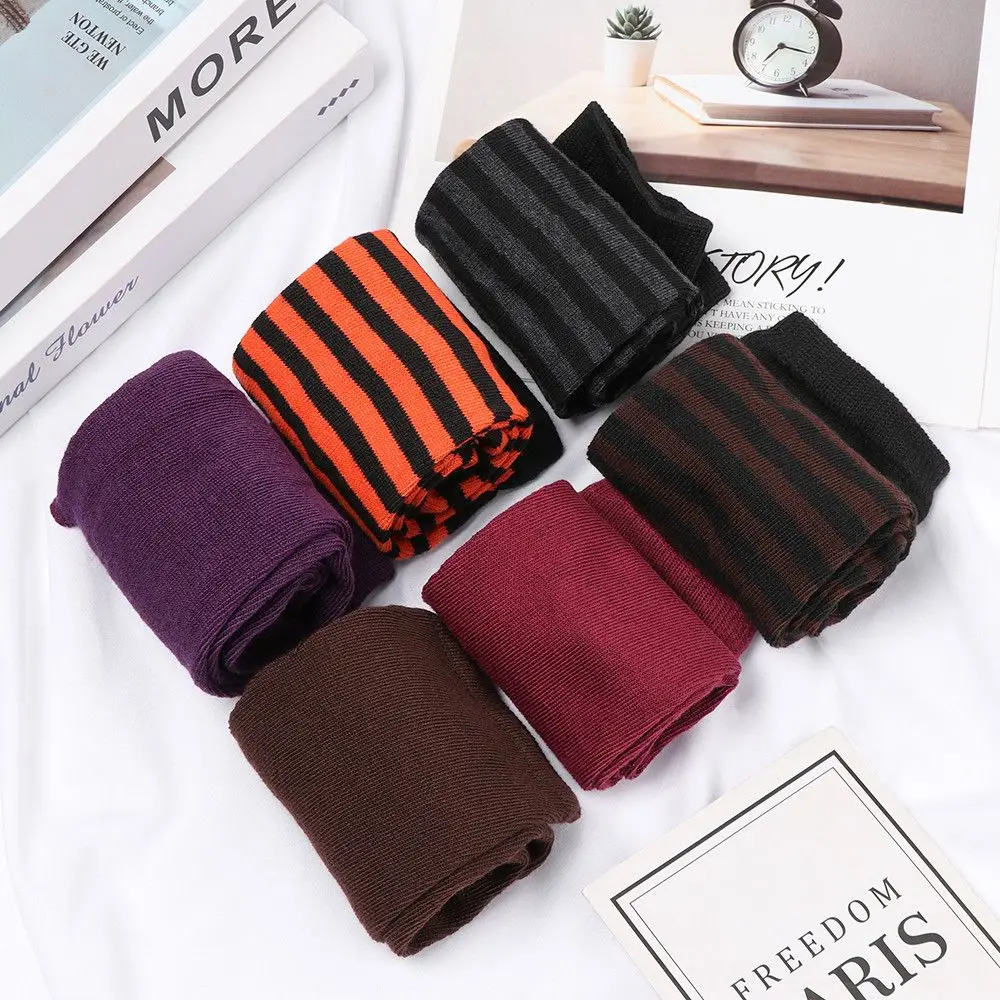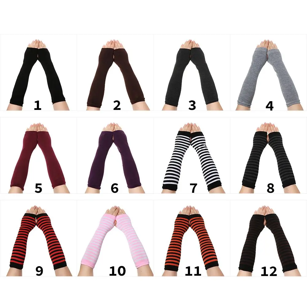Хлопковые классические длинные перчатки без пальцев для женщин и девушек, напульсник на руку с длинным рукавом, мягкие полосатые рукавицы на локтях, вязаные перчатки