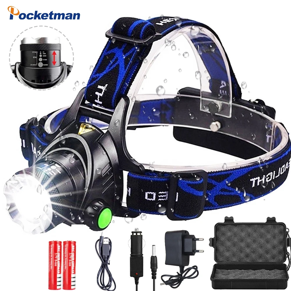 Налобные фонарики, светодиодный налобный фонарь L2T6, масштабируемый налобный фонарь, налобный фонарь на 18650 батареях для рыбалки и охоты