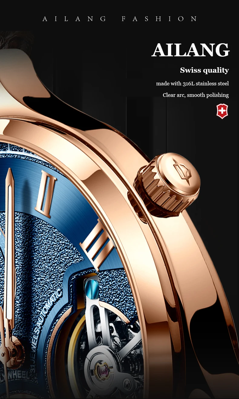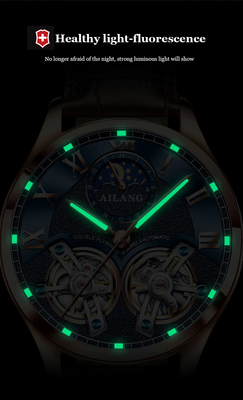 Часы наручные AILANG Мужские автоматические, оригинальные дизайнерские механические модные повседневные деловые, с двойным маховиком