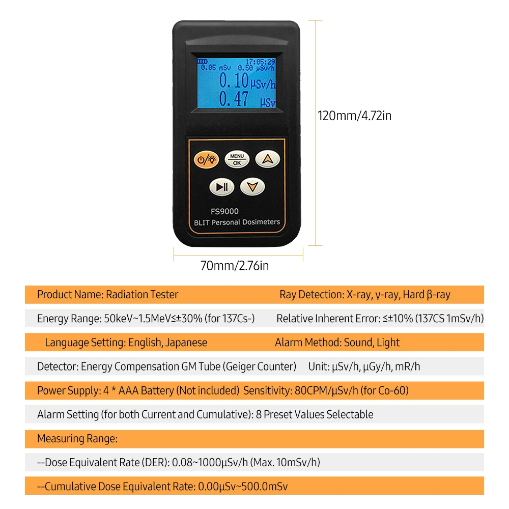 Это своего рода высококачественный счетчик Гейгера, который может помочь обнаружить γ, β, рентгеновский луч. Высокая чувствительность к обнаружению, особенно для мониторинга радиоактивности окружающей среды для обнаружения следов ядерной радиации. Способность анти-помех, способная обеспечить надежную работу в сложных электромагнитных средах. Широко используется, может использоваться в домашней среде, предметы первой необходимости, минеральные камни, декорированный камень и другое радиоактивное обнаружение, также может использоваться для промышленного или радиоактивного обнаружения утечки медицинского оборудования. Вы можете попробовать.Особенности:Простой и простой в эксплуатации, легко достичь нескольких режимов трансформации.Конструкция ручного инструмента, встроенные Высокопроизводительные батареи, которые легко носить с собой.Счетная трубка GM компенсируется, улучшенная энергетическая реакция.Высокая чувствительность к обнаружению, особенно для мониторинга радиоактивности окружающей среды для обнаружения следов ядерной радиации.Используйте встроенный тип зонда, эффективная защита зонда не повреждена.Удерживайте количество звука, вы можете быстро определить радиационную ситуацию вокруг окружающей среды, чтобы быстро определить точное местоположение источников излучения.Способность анти-помех, способная обеспечить надежную работу в сложных электромагнитных средах.Точность отображения прибора до 0,001 SV/h (режим CPM до 1CPM).Широко используется, может использоваться в домашней среде, предметы первой необходимости, минеральные камни, декорированный камень и другие радиоактивные обнаружения.Примечание: 1 мин Автоматическое выключение ЖК-светильник светодиодный светильник, нажмите любую кнопку, чтобы восстановить светодиодный светильник.
