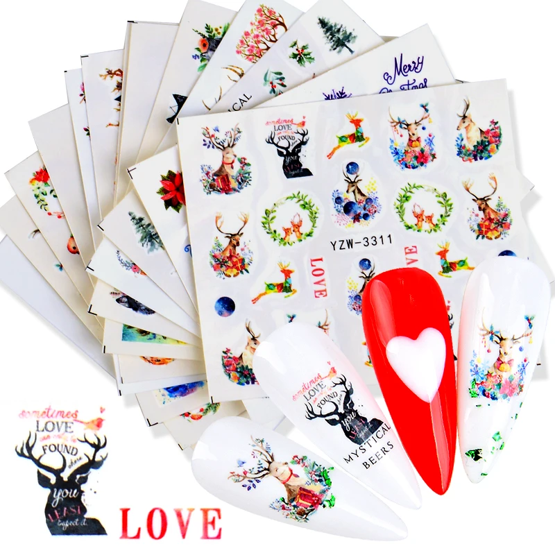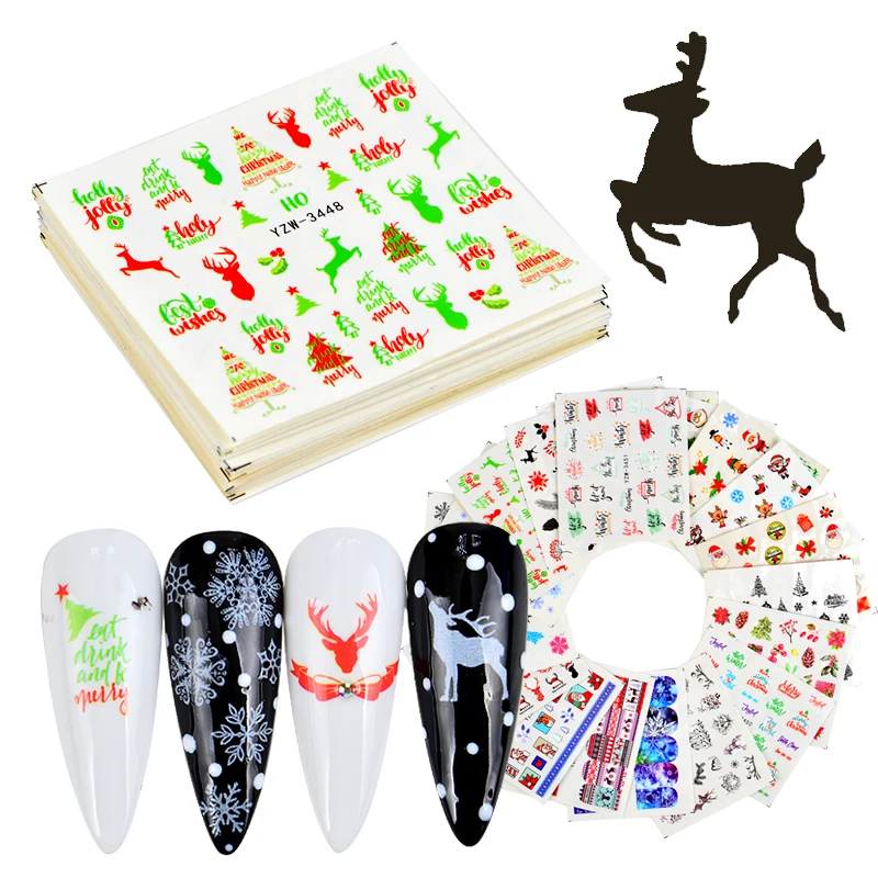 2022 Рождественская наклейка для ногтей Санта Клаус Лось снеговик подарок Водная передача слайдер полная обертка Рождество мультфильм зимняя наклейка
