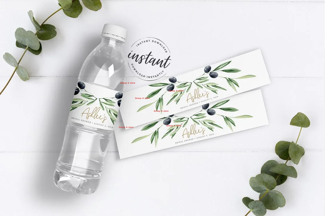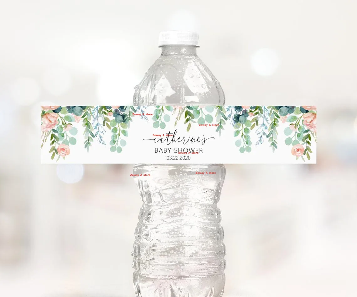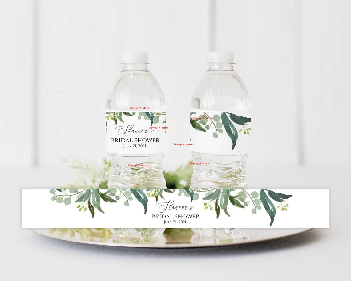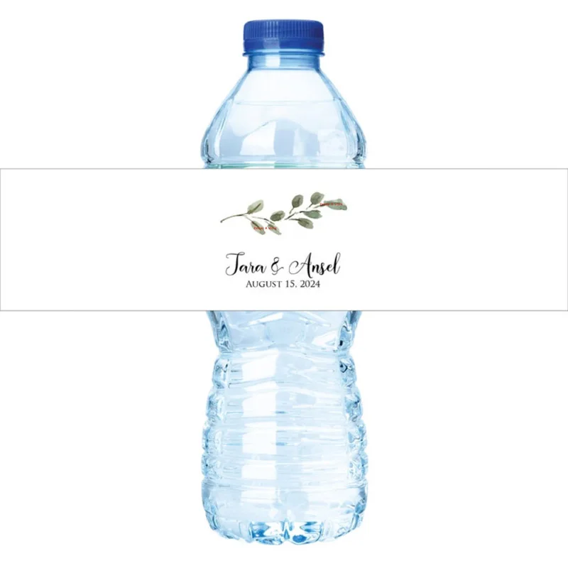 Этикетка для бутылки с водой, свадебная этикетка для бутылки с водой, этикетка для бутылки с водой, персонализированные водонепроницаемые этикетки, этикетки для ветки эвкалипта, зелени