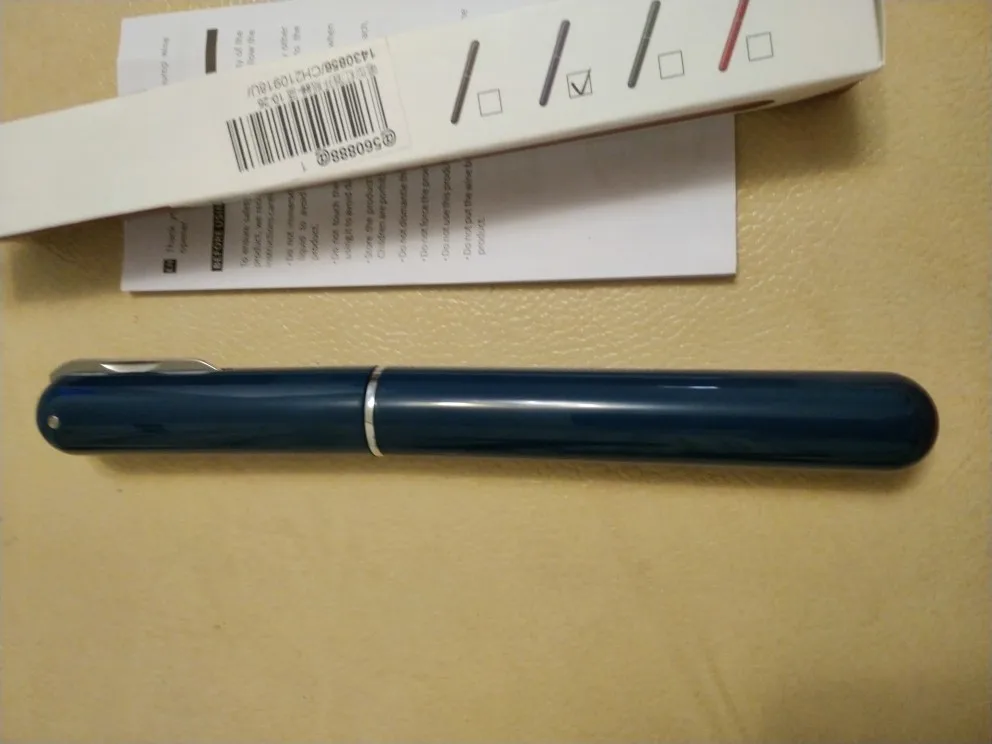 На ощупь пластиковый корпус. Лёгкий. Колпачок не очень хорошо держится. А так всё как в описании. Доставка до Смоленска 2 недели.