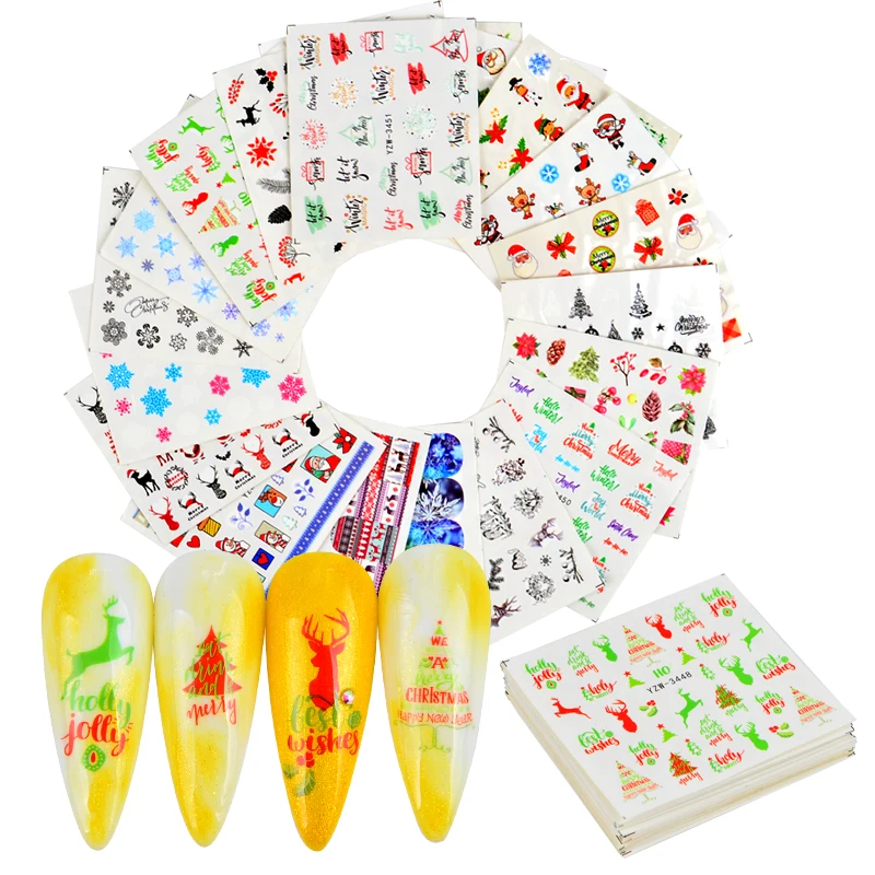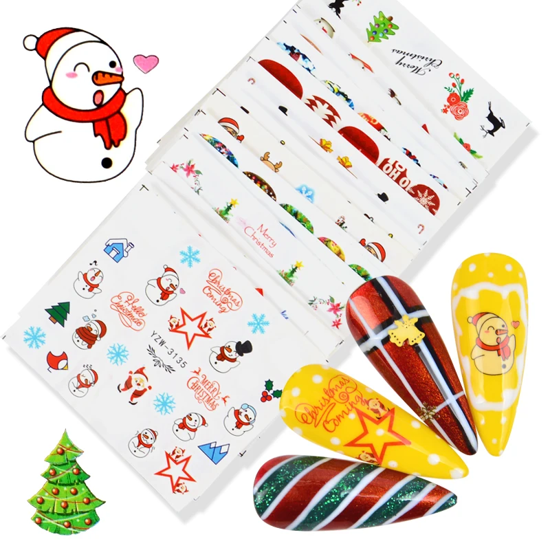 Рождественские Зимние Водные Наклейки для ногтей рождественские Мул...