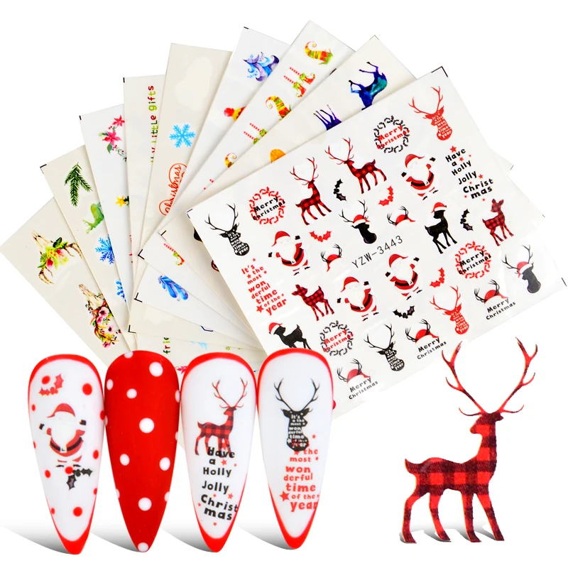 Рождественская наклейка для ногтей, 1 шт., Санта-Клаус, олень, снег...