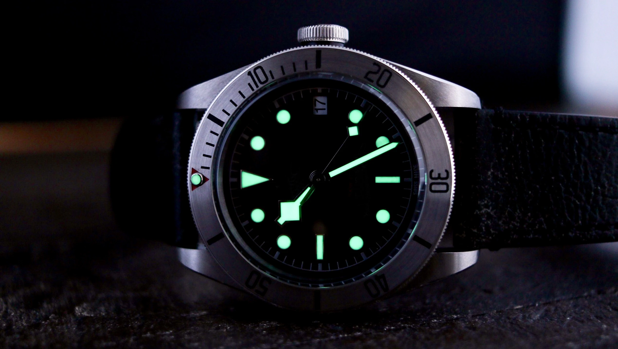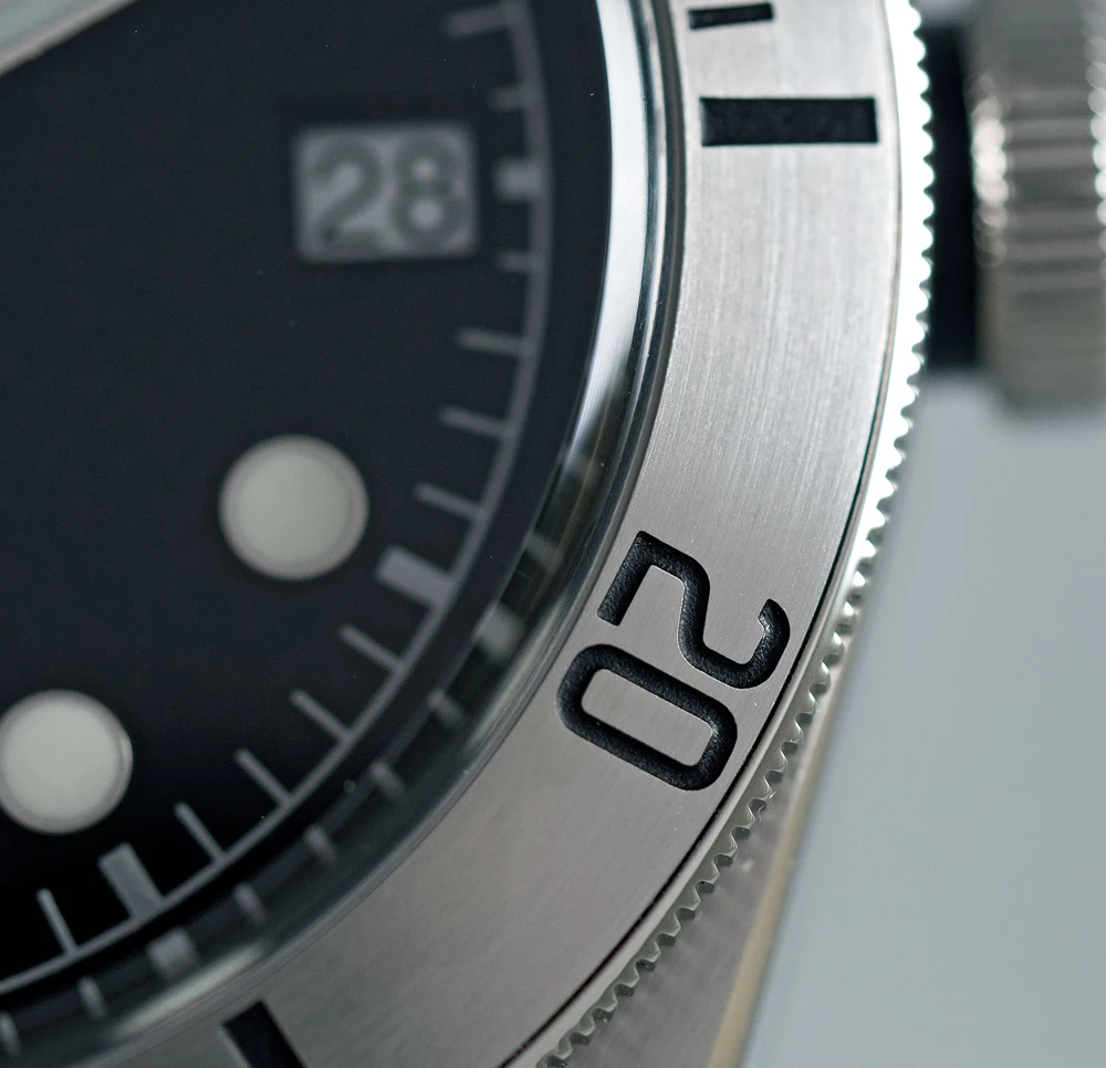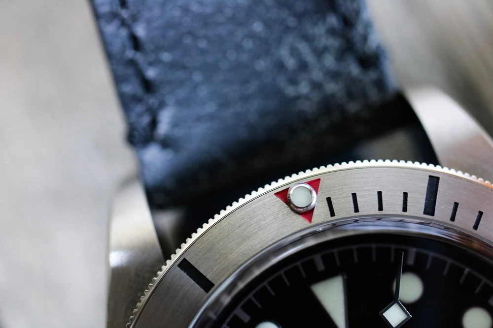 Другим очевидным дополнением является вставка из матовой стали. Браслет с заклепками и матовые стальные наконечники часов, эффект очень яркий, особенно с брызгами красного цвета на треугольнике в верхней части ободка. Принимая во внимание, что марку ссылаются на винтажные часы, это то, что винтажные коллекционеры относятся к ободку «ghost'». На оправе «ghost'» черный цвет будет выцветать и носить на светильник с серым или серебристым эффектом. Сталь BB имеет этот образ призрака, особенно при ношении на зеленом тканевом ремешке.