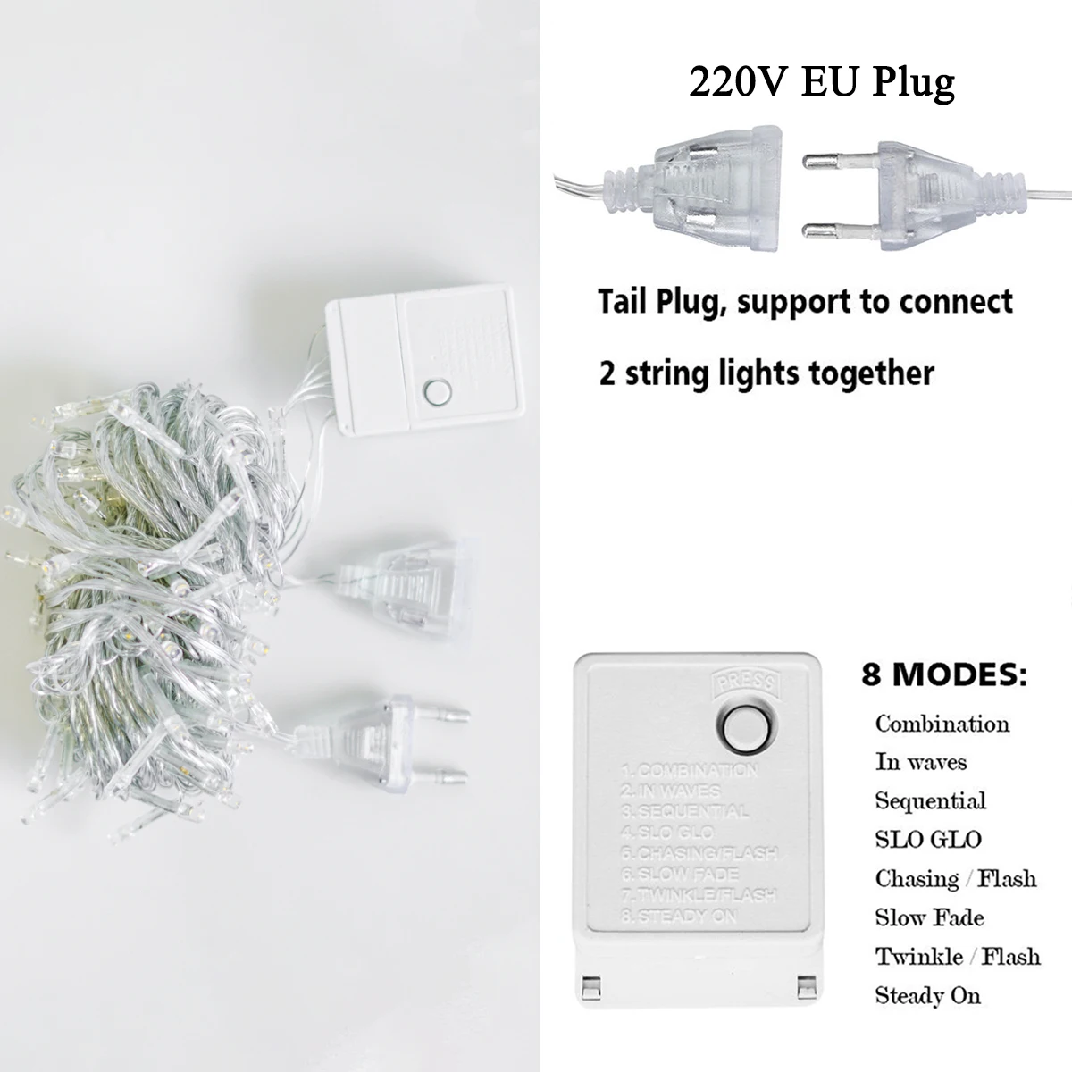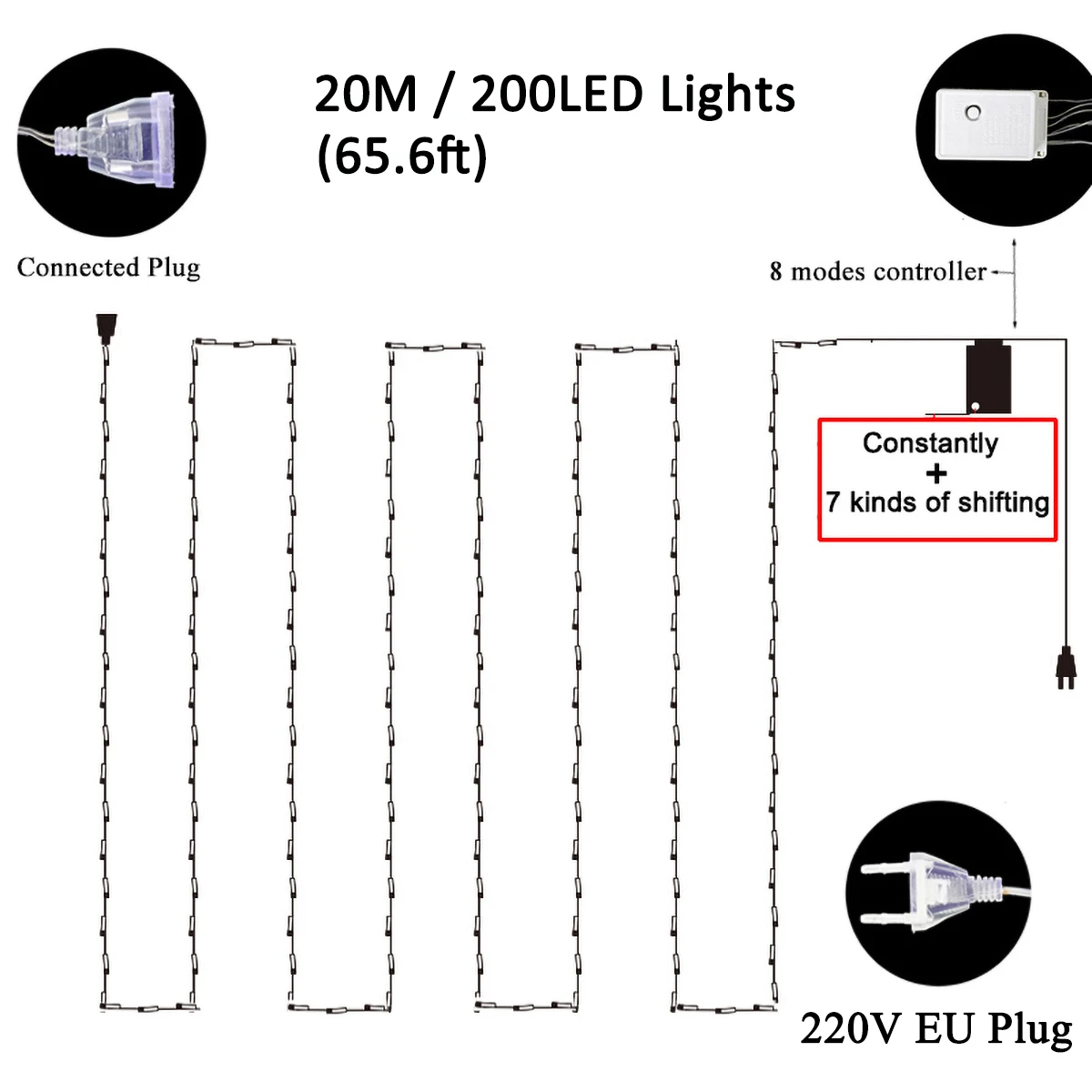 • [Яркость и тепло] наш светодиодный светильник на Рождество использует светодиодный светильник высокой яркости, каждый кристально чистый светодиодный светильник светится с углом обзора 360 градусов. Этот светильник очень теплый, мягкий и не ослепляющий, добавляя классический и очаровательный светильник к вашему рождественскому украшению• [8 режимов освещения с функцией памяти] 8 режимов для различных случаев и настроений, создавая уникальные атмосферы. Будь то романтическая годовщина, веселое Рождество или сюрпризы для ваших близких, эти сказочные гирлянды сделают трюк! Чтобы переключиться между режимами освещения the8, вам нужно всего лишь нажать кнопку на адаптере. Встроенный чип памяти сохраняет последний режим настройки, нет необходимости перезагружать режим каждый день• [Широко используется] светильник с рождественской елкой длиной 65,6 футов (20 метров) с 200 светодиодными лампами идеально подходит для использования в помещении и на открытом воздухе. Прозрачная проволока может скрывать внутри гирлянды, рождественскую елку и многое другое. Он также может сочетаться с любым фоном, очень подходит для комнаты, стены, сада, крыльца или добавления сверкающего свечения в ваш патио или балкон, что делает каждый уголок новым.• [Водонепроницаемость IP44] Наши водонепроницаемые рождественские гирлянды прошли сертификацию IP44. Все мини-светодиодный лампы-это светодиодный светильник fil с клейкими Слоями Горячего Расплава, защита от замерзания и окисления обеспечит более длительный срок службы. Идеально подходит для использования на открытом воздухе без повреждений, включая сильный дождь и снег. Но обратите внимание, что адаптер nad должен быть защищен от водыОбратите внимание:1. Если вы используете их на открытом воздухе, оберните вилку и адаптер в полиэтиленовый пакет, чтобы предотвратить попадание воды. Огни и шнуры водонепроницаемы, но они не должны замачиваться в воде.2. Фактическая длина может быть менее 65,6 футов (20 метров), но не менее 63 футов (19,2 метров).
