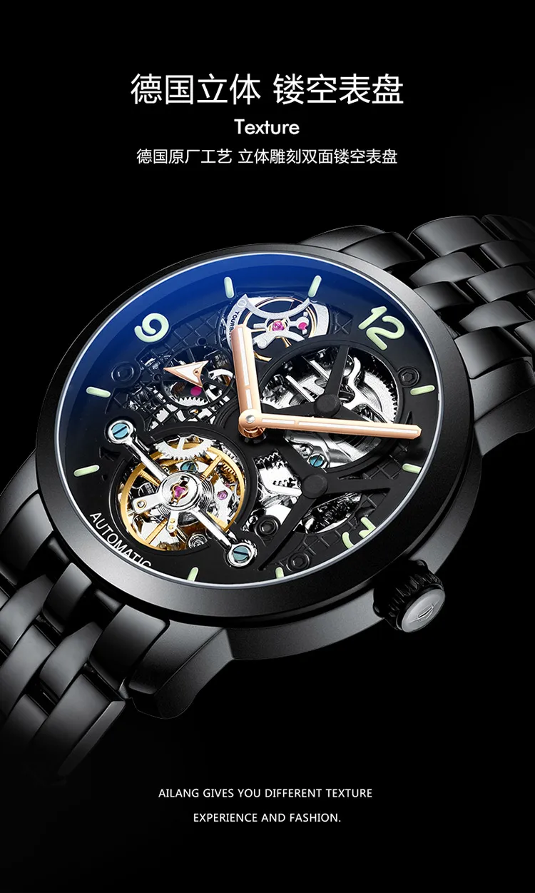 Часы AILANG мужские с кожаным ремешком, оригинальный дизайн, автоматические брендовые наручные часы с турбийоном, diesel machinery