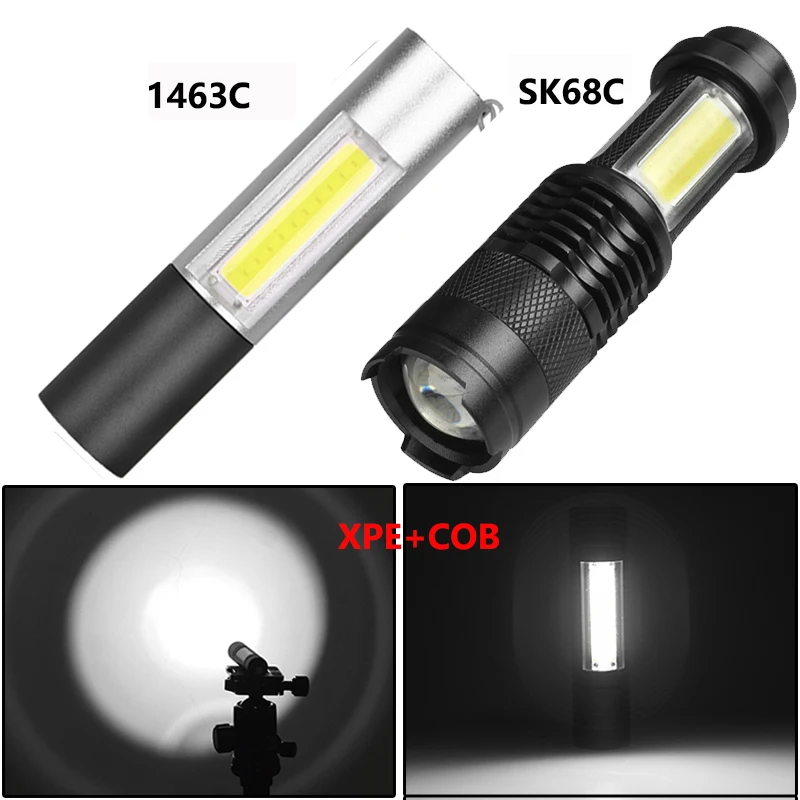 Встроенная 14500 светодиодсветильник вспышка с зумом, мини-фонарик, фонарик с аккумулятором USB, наружный фонарь XPE + COB для кемпинга