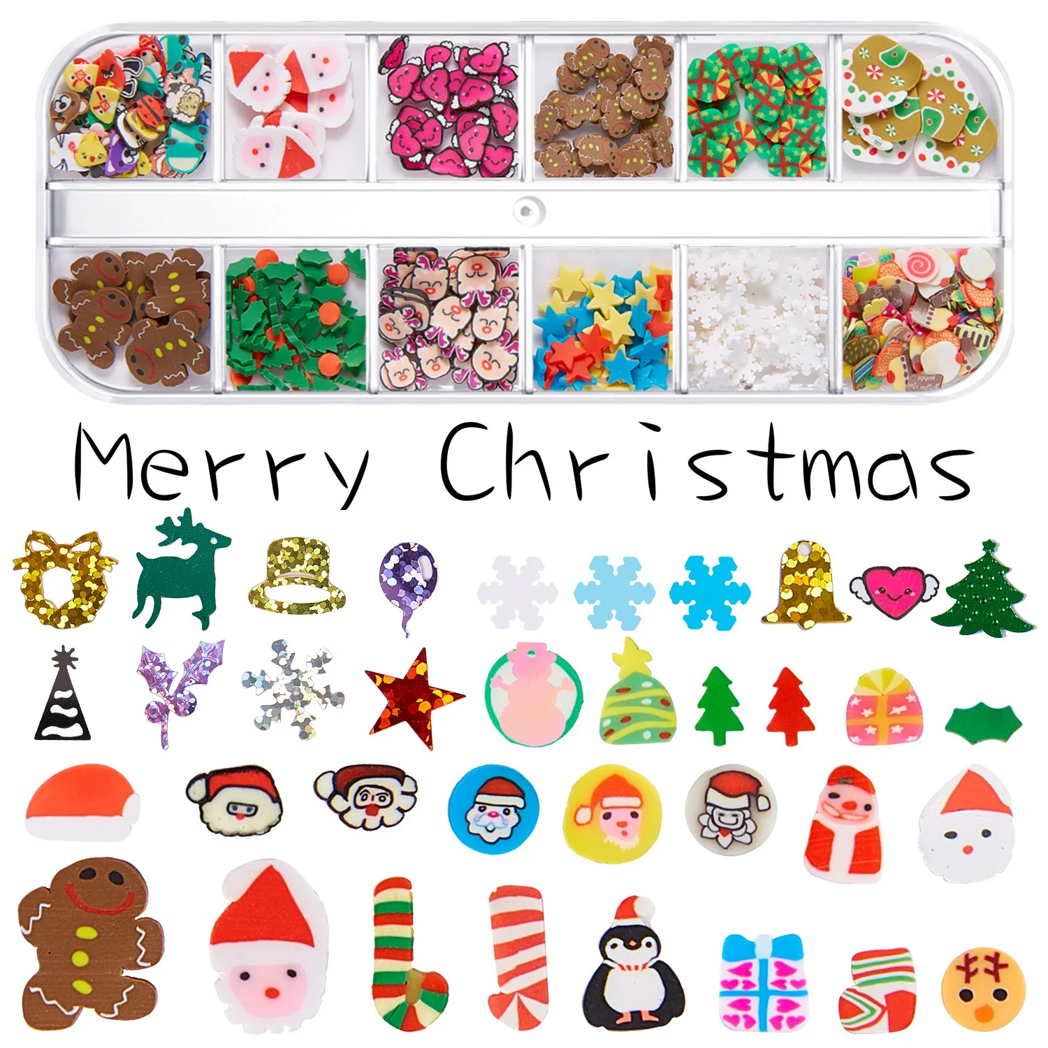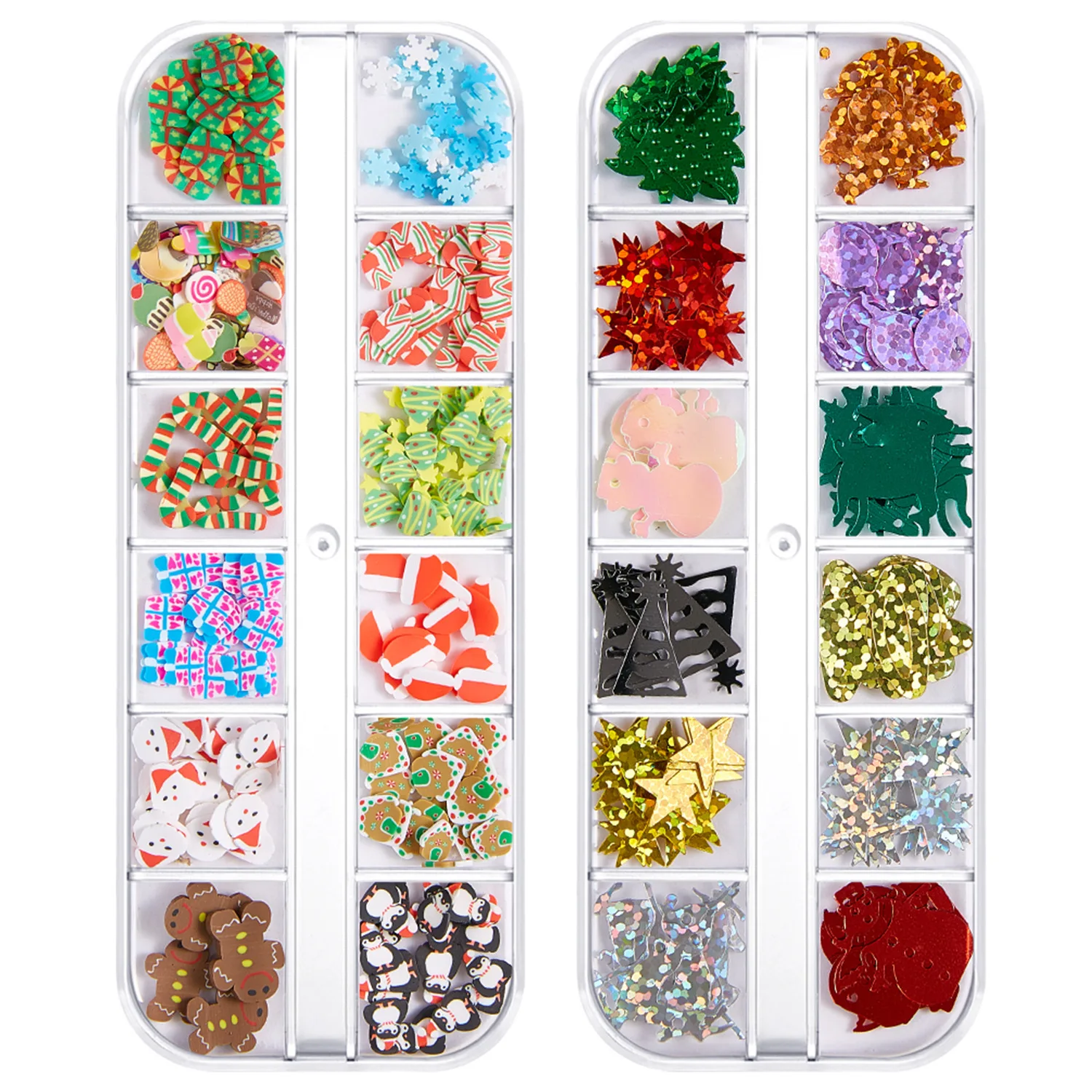 Рождественская смешанная серия, 12 ячеек, с блестками, для дизайна ногтей