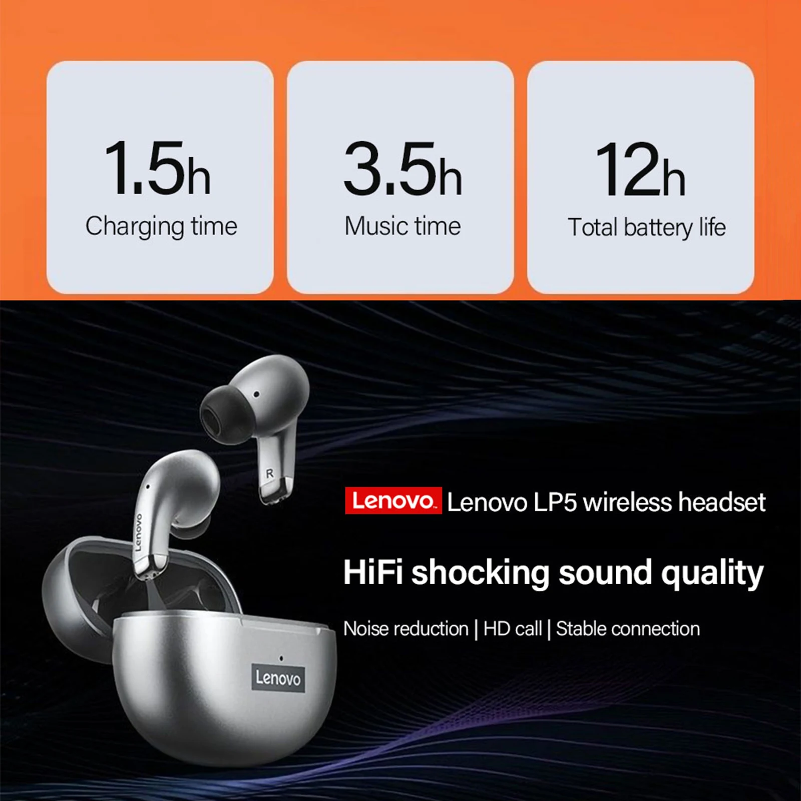 TWS-стереонаушники Lenovo LP5 с поддержкой Bluetooth 9D, Hi-Fi, спо...