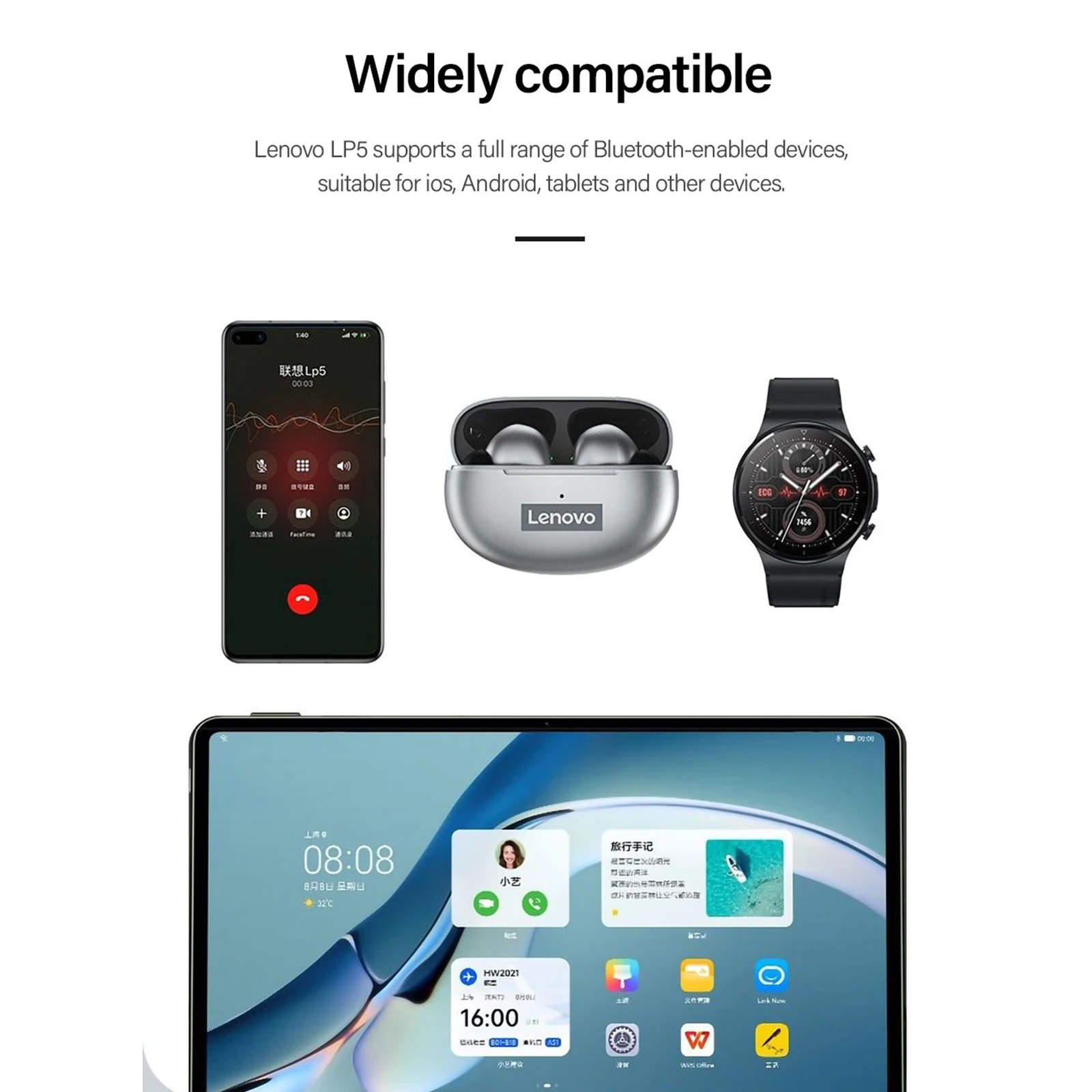 Беспроводные наушники Lenovo LP5 с поддержкой Bluetooth 5,0 и высок...