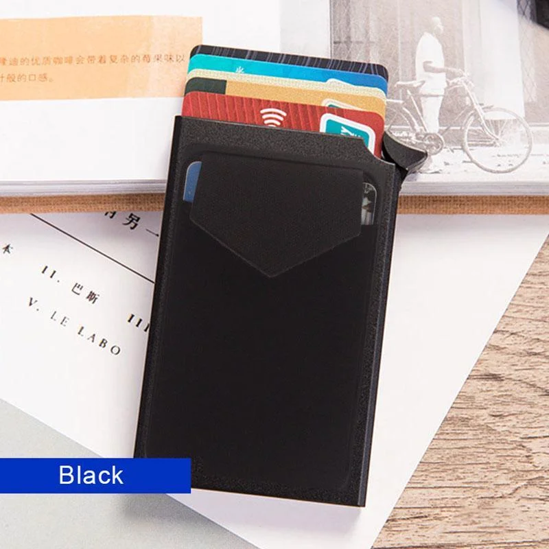 Выдвижной RFID-бумажник, тонкий алюминиевый бумажник, эластичный чехол для задней панели, блокирующий ID кредитную карту, защитный дорожный держатель для удостоверения личности