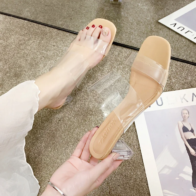 2020 горячие прозрачные каблуки женские сандалии-шлепанцы летние ту...