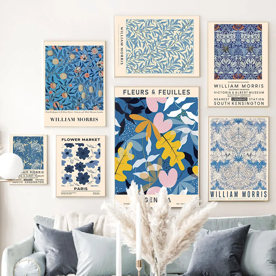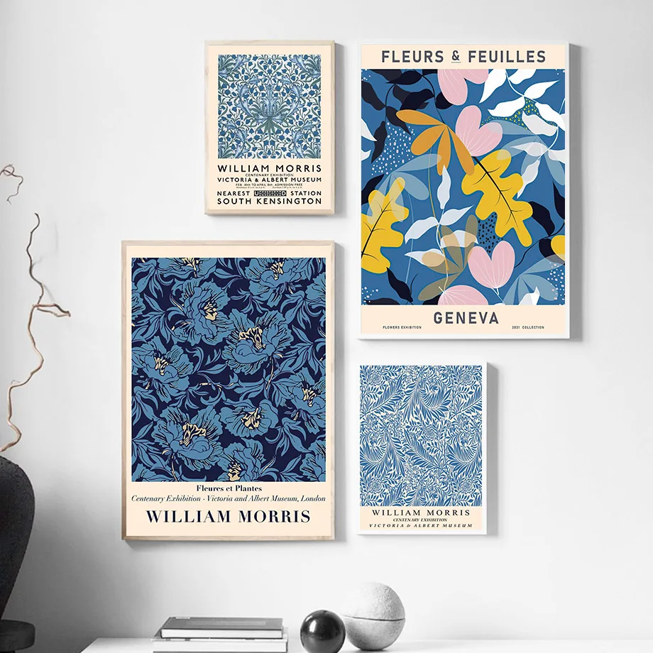 Абстрактная Картина на холсте с изображением Морриса, цветов, минималистских форм, настенные картины и принты в скандинавском стиле, декор для гостиной