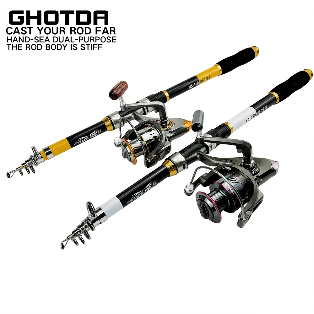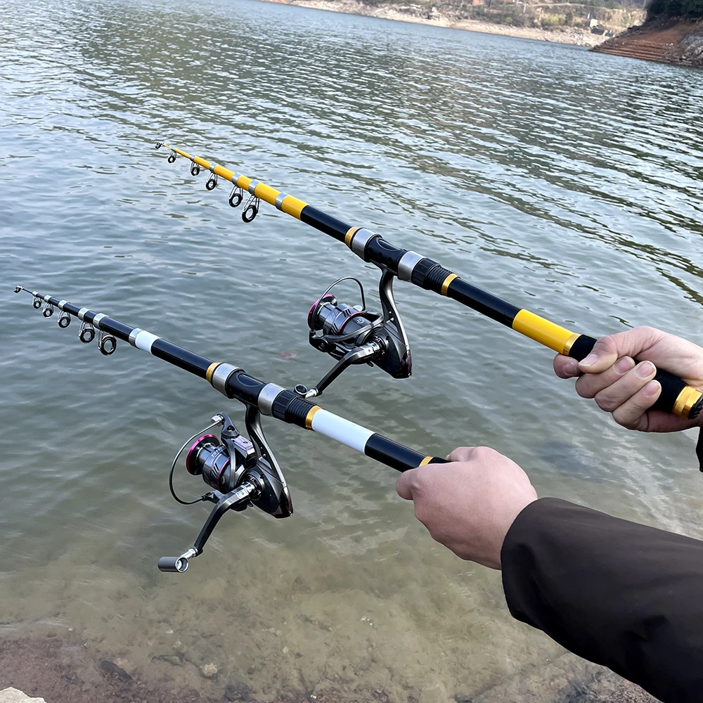 Телескопическая удочка и Катушка для спиннинга, комплект из жесткого спиннинга 2,1, 2,4, 2,7, 3,0, 3,6 м