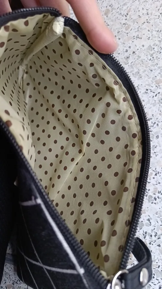 Продукт соответствует описанию, быстрая доставка, хотя выслали с небольшим опозданием из-за праздников Китайского Нового Года. С продавцом не общалась. Очень довольна покупкой. Хотя материал светлой косметички содержит включения чёрных/синих нитей, но это просто качество ткани, она крепкая, наподобие мешковины. Удалила эти нитки с помощью иглы. Все швы ровные, очень качественно сделано!