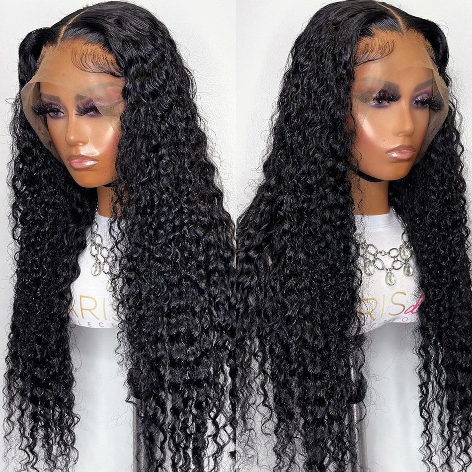 32 дюйма 13x6 глубокая волна HD кружевной передний парик человеческие волосы 13x4 прозрачные кружевные передние al парики высокой плотности вьющиеся длинные парики черные женские