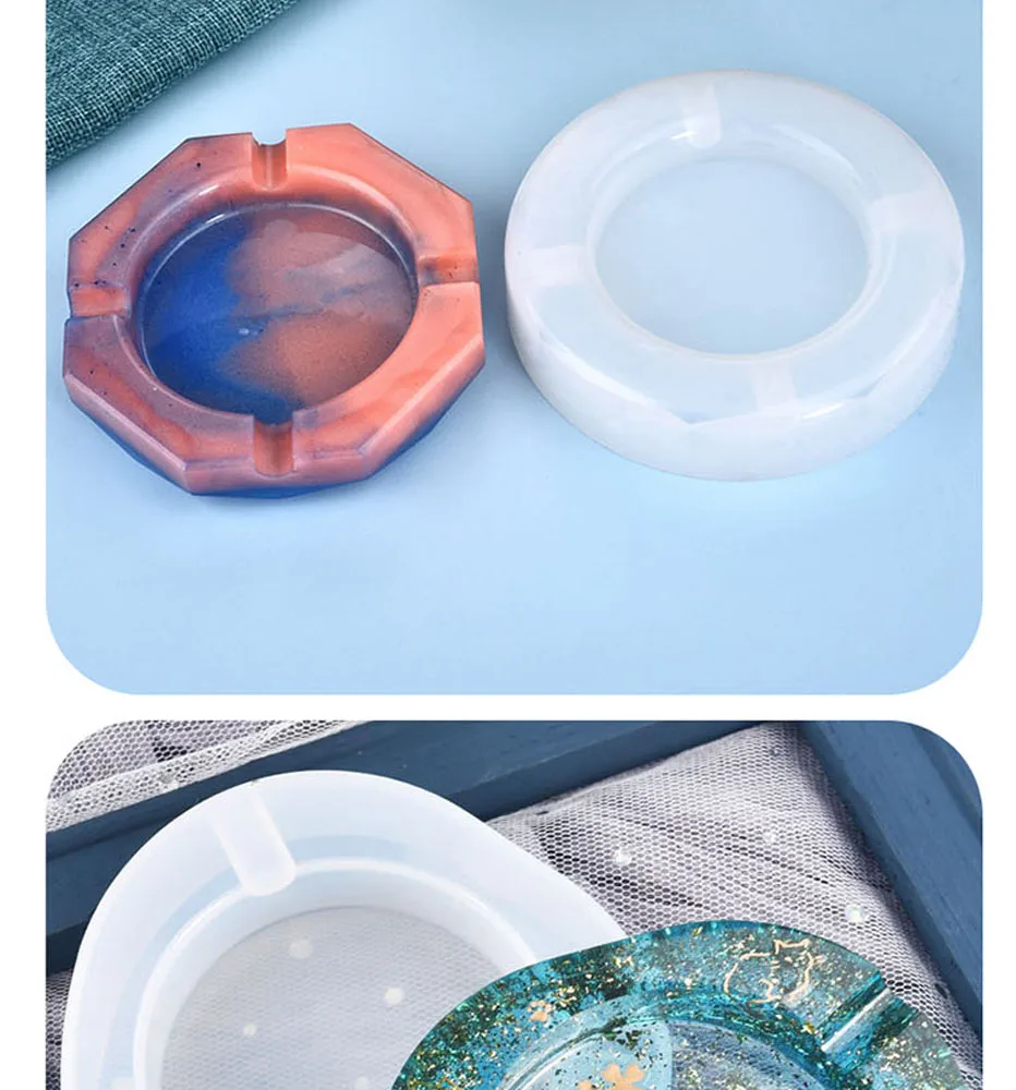 Прозрачная зеркальная пепельница для самостоятельной сборки, силиконовая форма, прозрачная эпоксидная смола, УФ смола, ручная работа, форма квадратнойкруглой формы