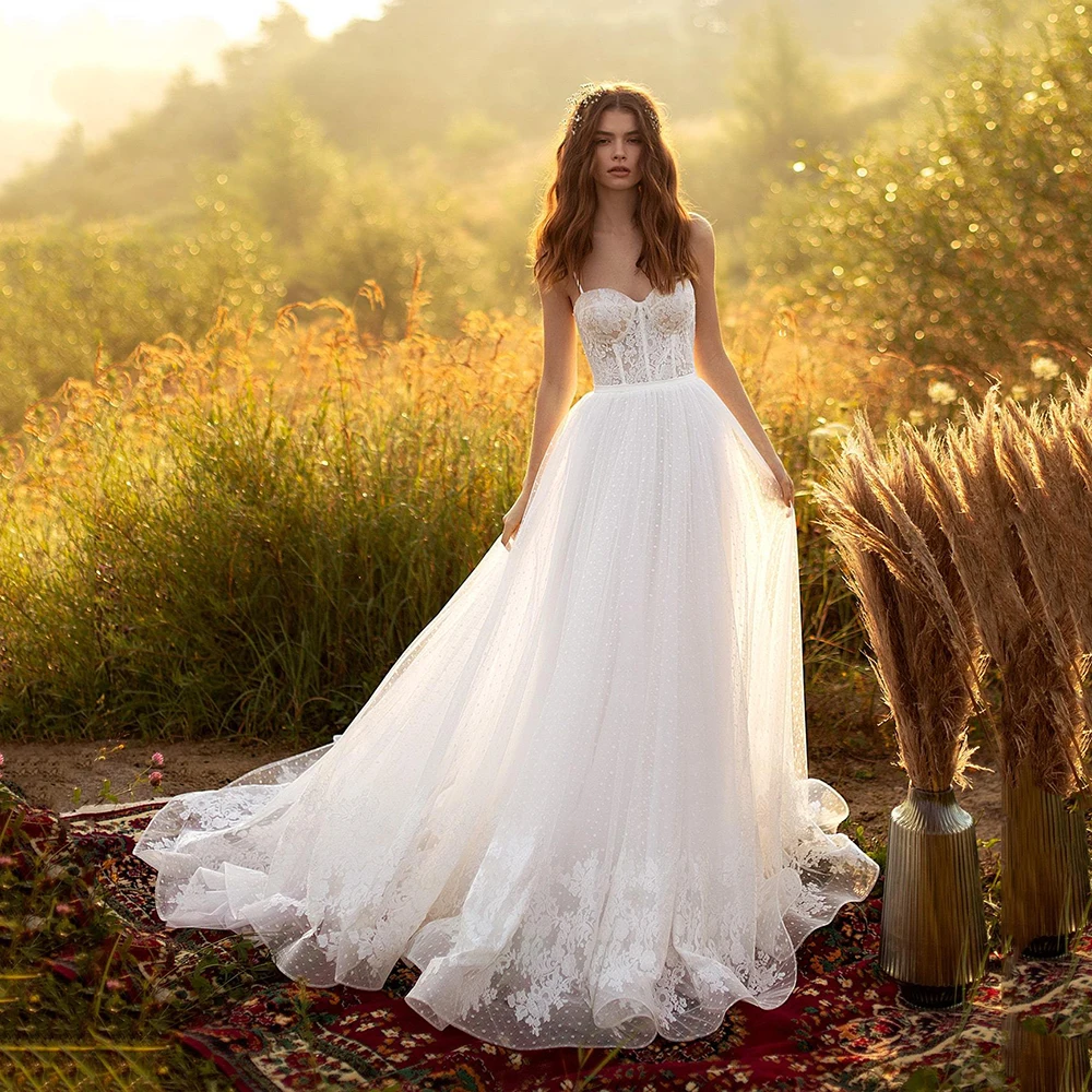 UZN Элегантное свадебное платье цвета слоновой кости трапециевидной формы в горошек, Милое Свадебное платье на тонких бретелях, кружевные платья невесты с аппликацией