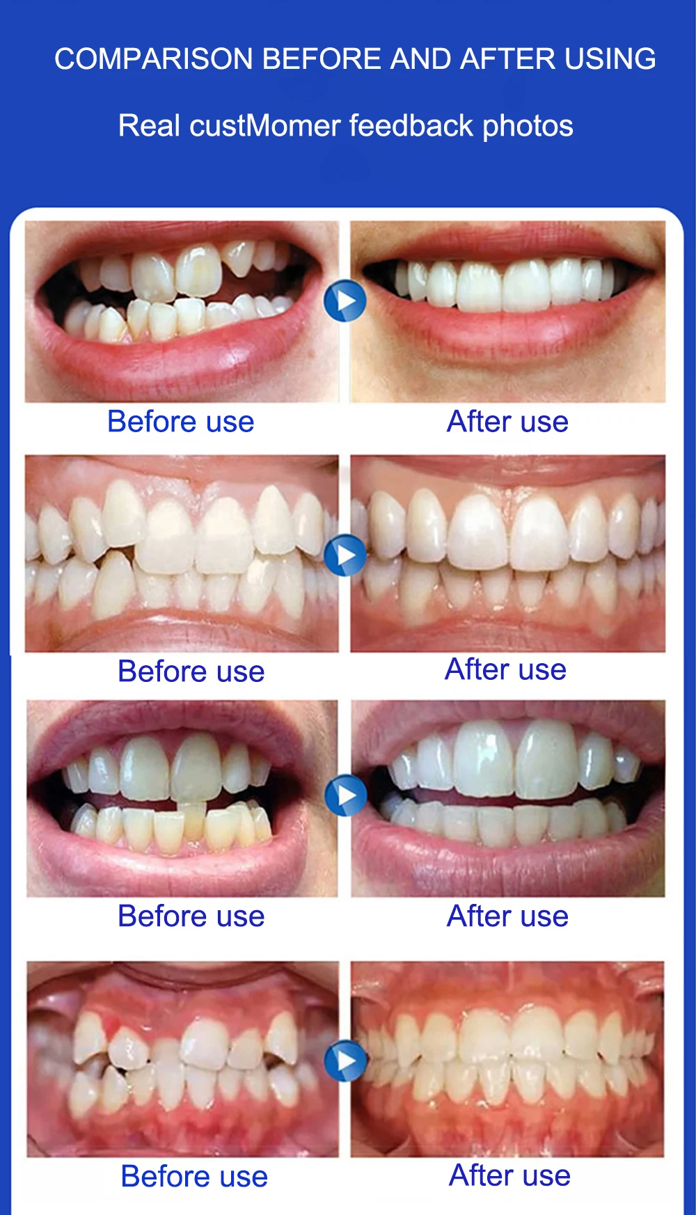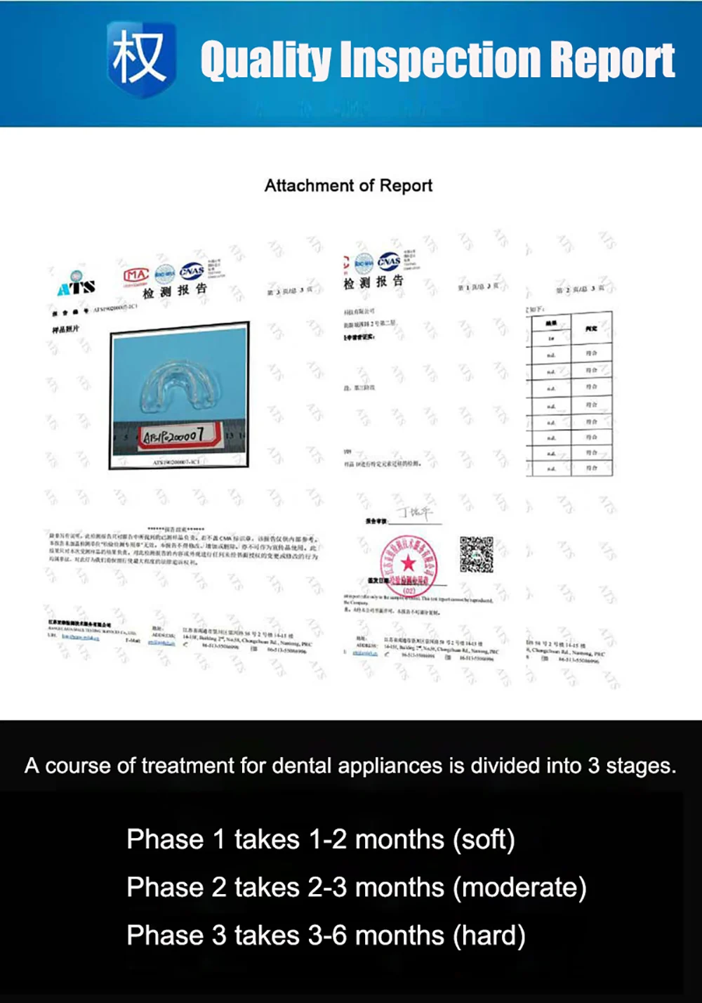 Название продукта: многофункциональное невидимое стоматологическое устройствоХарактеристики продукта: легко носить с собой, может использоваться в любое время, эластичный материал, подходит для различных групп.Внимание: Не помещайте в горячую воду выше 70 градусов, чтобы предотвратить деформацию. Рекомендуется дезинфицировать спиртом или замачивать в теплой соленой воде в течение 30 минут.Фаза 1: исправление поверхности зубаТвердость: мягкаяСрок службы: 1-2 месяцаФункция: используется для размещения ортезиков и первичных ортезикФаза 2: коррекция корняТвердость: умереннаяСрок службы: 2-3 месяцаФункция: для дальнейшей адаптации к ортопедии и повышения эффекта коррекцииФаза 3: консолидация и формированиеТвердость: ЖесткийСрок службы: 3-6 месяцевФункция: увеличение силы коррекции для более позднего формирования.Инструкции по использованию:1. На начальном этапе ношения время ношения не должно быть слишком длинным. Его можно постепенно увеличивать и постепенно регулировать.2. Например, в начале носите его в течение 2 минут в первый раз, 5 минут во второй раз, 10 минут в третий раз и полчаса в четвертый раз. Медленно увеличивает время ношения. Отрегулируйте время в соответствии с вашей адаптивной способностью.3. Если вы чувствуете дискомфорт или боль в зубах, Снимите их, расслабьтесь, а затем снова наденьте.4. Сначала не кусайте зубы. После Адаптации сила окклюзии может быть увеличена.5. Носите его в течение 1-2 часов в течение дня после адаптации. После того, как зубы привыкнут к брекетам, время использования может быть увеличено.Примечание:1. Между изделиями и изображениями возможны небольшие отличия в цвете, вызванные влияния света, окружающей среды и экрана дисплея при съемке фотографий. Пожалуйста, внимательно рассмотрите товар перед покупкой.2. В поставку товара не включаются дополнительные декоративные элементы, представленные на картинке.3. Подписчикам моего магазина предоставляется дополнительная скидка 1%.4. Поскольку изделие измеряется вручную, возможна небольшая погрешность в размере.