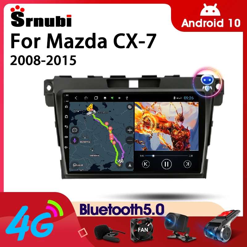 Автомобильная магнитола Srnubi Android 10,0, мультимедийный видеоплеер для MAZDA CX-7 2008-2015, GPS-навигация, 2 Din, 4G, Wi-Fi, DSP, DVD-колонки