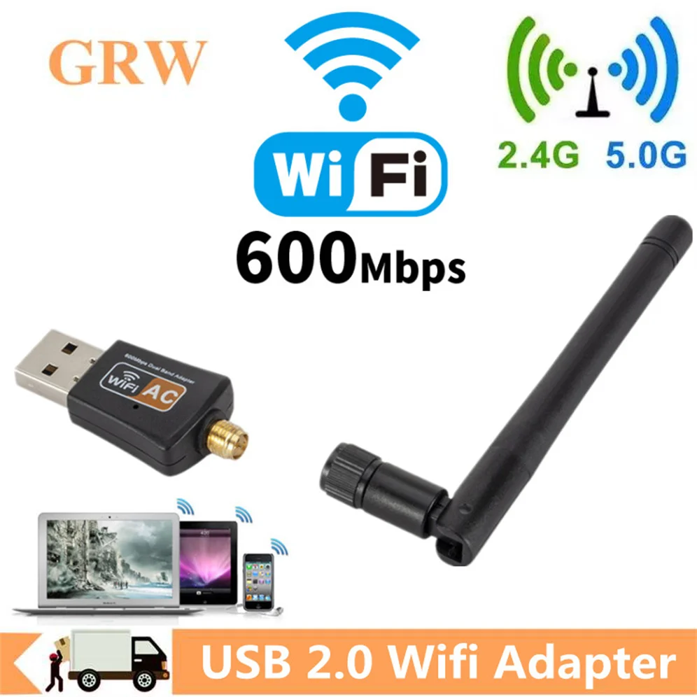 USB Wi-Fi адаптер Grwibeou 600 Мбитс, 2,4 + 5,0 ГГц, USB