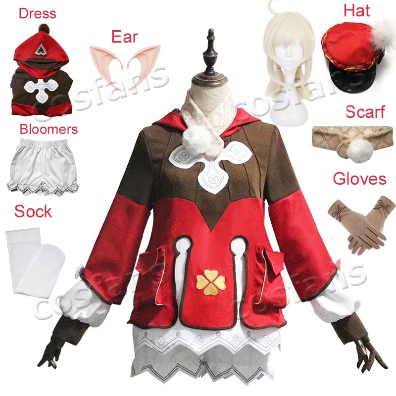 Цельный Комплект для косплея Genshin Klee, Шапка, очки, перчатки, шорты, костюмы для девочек, игровые комплекты, проектная форма, платье