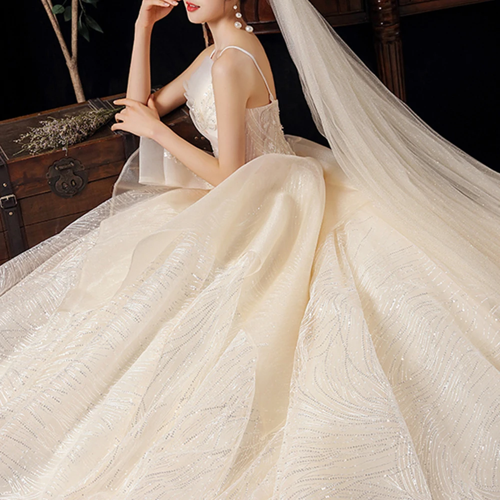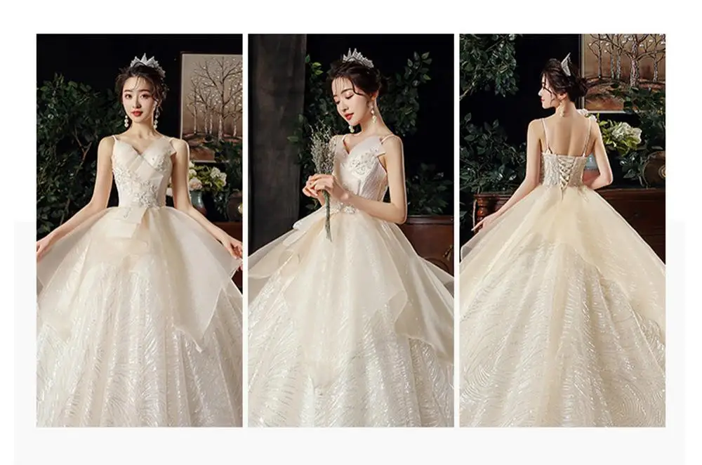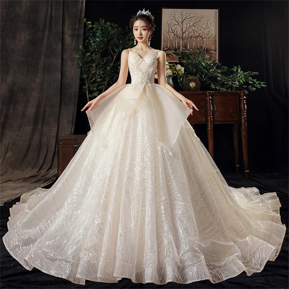 Роскошное кружевное свадебное платье принцессы Dioflyusa с оборками для женщин 2021, длинное женское платье без рукавов на бретелях