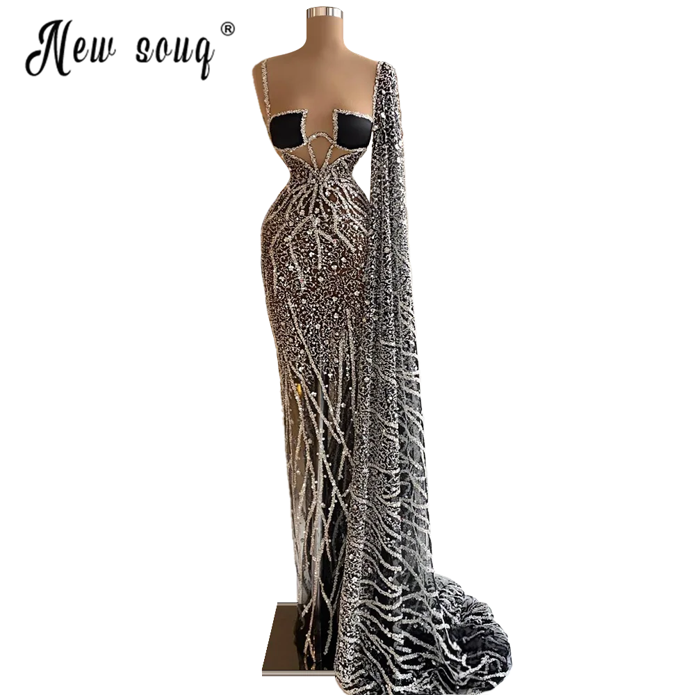 Блестящие черные вечерние платья-русалки с блестками, 2021, женское вечернее платье, Длинная накидка, прозрачные женские свадебные платья с V-образным вырезом для выпускного вечера