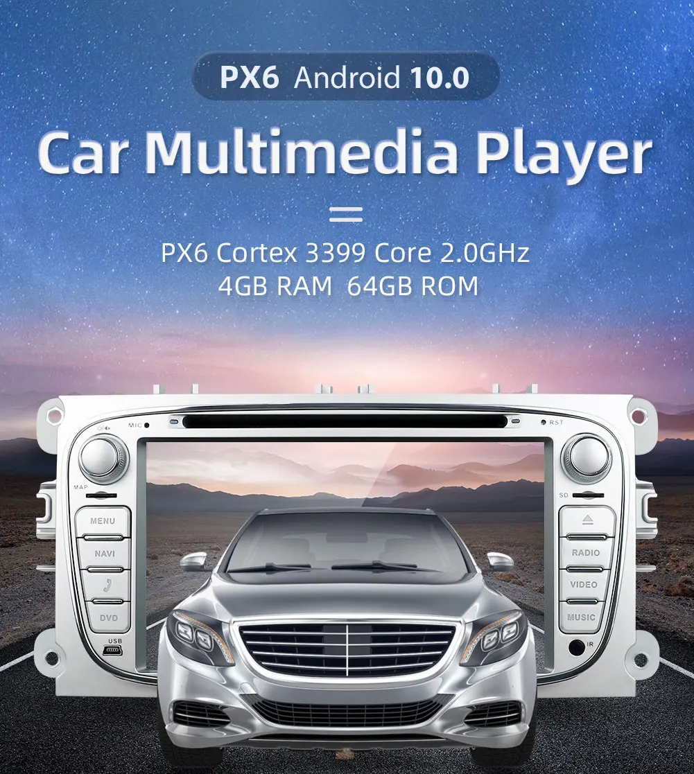 Автомагнитола 2 Din, мультимедийный проигрыватель, DVD, Android 10,0, для Ford Focus S-Max, Mondeo, Galaxy C-Max, Kuga, GPS, RDS, Auto Carplay + DSP