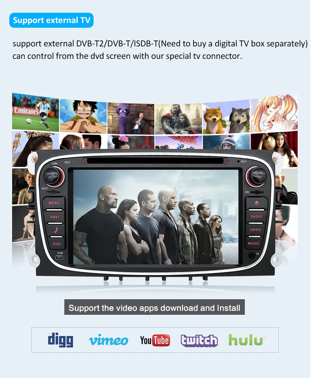 Optional3G/4G Dongle,Digital TV,OBD,DVR,DAB.OBD.TPMS,External MIC