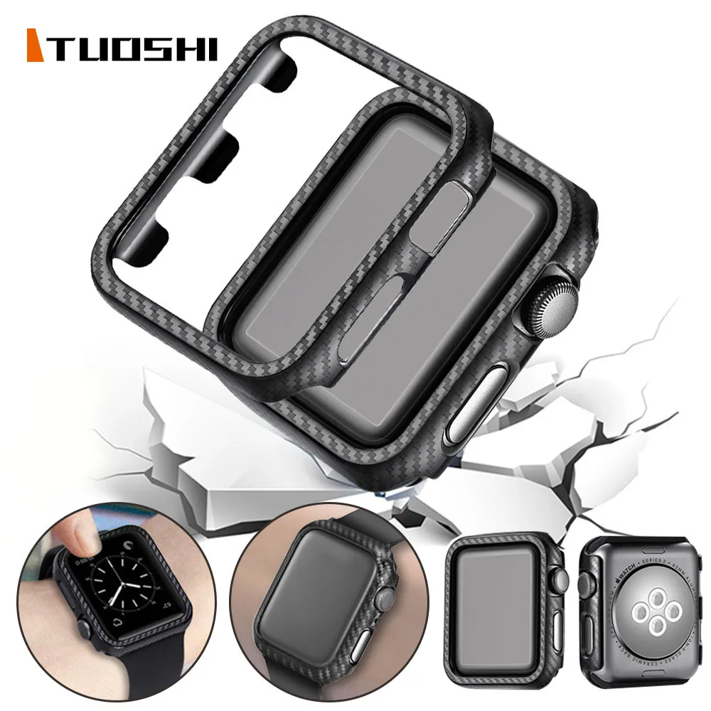 Защитный чехол-бампер из углеродного волокна для Apple Watch серии 7, 6, SE, 5, 4, 40 мм, 44 мм, для Iwatch 3, 2, 38 мм, 42 мм, аксессуары для часов