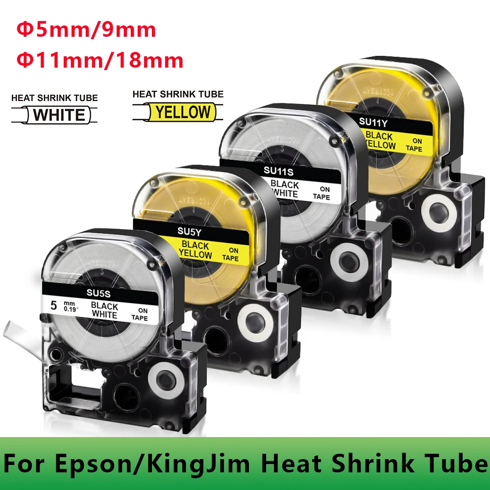 Ecowell LK-4WBA5LK-4YBA5 5 мм9 мм 11 мм18 мм, белая этикетка, совместимая с Epson KingJim SU5S SU5Y SU11S SU11Y, термоусадочные трубки
