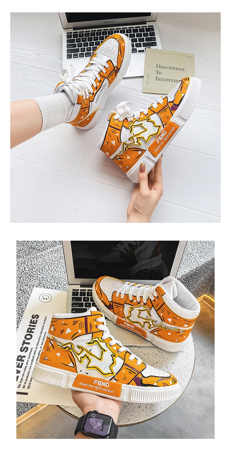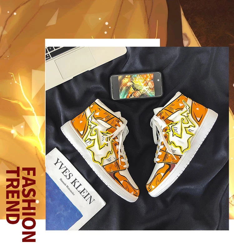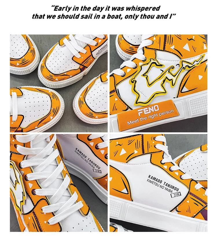 Мужские кроссовки в стиле аниме, модная обувь для пар, рассекающие демонов, стиль хип-хоп, желтые дизайнерские